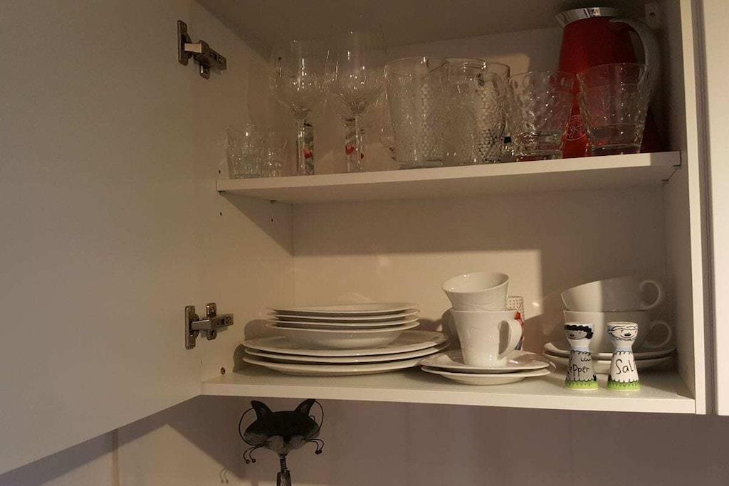 , , , Stue(, , , bibliotek, Fjernsyn, CD-afspiller), Køkken(, , , tekøkken, spisebord, kogeplade, kogeplade, brødrister, kaffemaskine, ovn, opvaskemaskine , køleskab, fryser), soveværelse(, , dobbeltseng), badeværelse(, , toilet, bruser, bruser, håndvask, håndvask, vaskemaskine, varme, føntørrer), Internetadgang, Internetadgang, spilcomputer, tørretumbler, vaskemaskine, terrasse, have(Græsplæne, havemøbler, solstole), parkering, strygebræt, strygejern, tørreskab