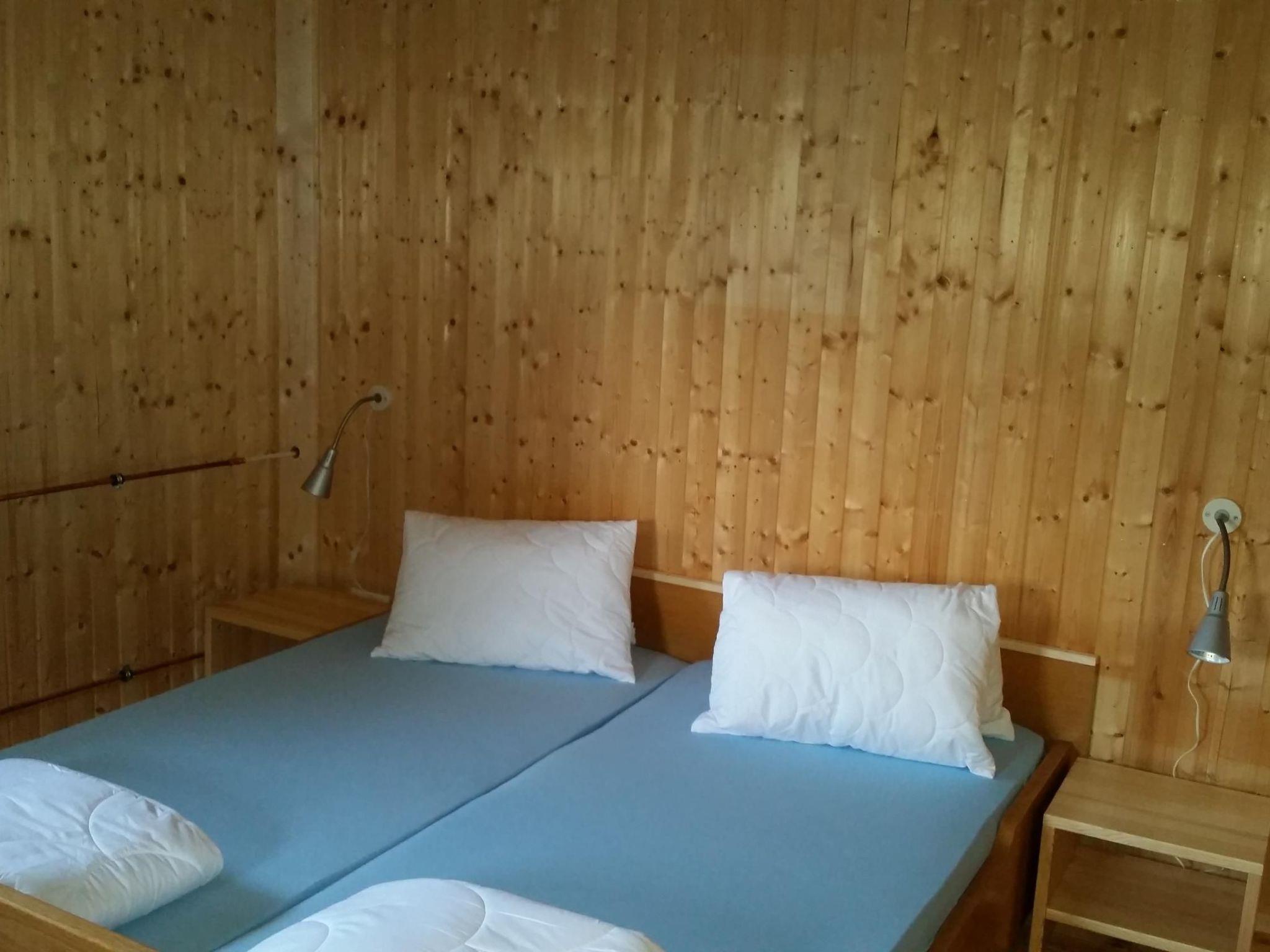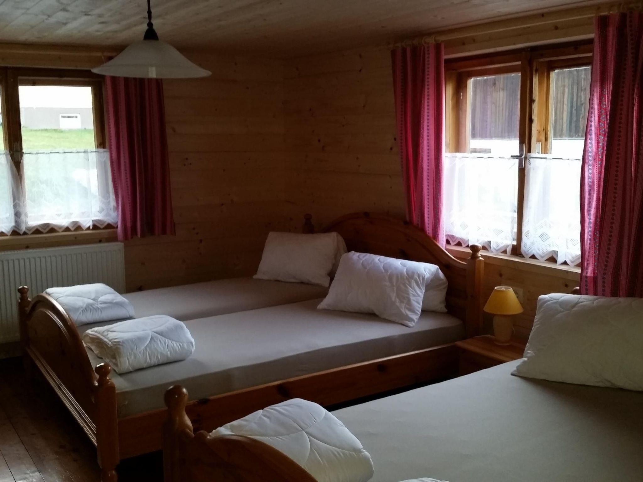 You live alone in a very simply furnished old farmhouse. With a living space of 150 m², it is ideal for twelve people. The hut has central heating, which is supplied by the pellet stove in the farmhouse parlour. The cosy, rustic-style kitchen on the ground floor is heated by a wood-burning stove and is fully equipped with a hob, oven, coffee machine, fridge, microwave, dishwasher and kettle. There is plenty of room for everyone at the large dining table, whether for breakfast to get off to a good start or when meeting for dinner after an eventful day. One bedroom and one of the two bathrooms with shower and WC are also located on the ground floor of the house. The second shower room and the three remaining bedrooms are on the upper floor. The first bedroom has a standard-width double bed. In the second room there is a dormitory for seven people consisting of two double beds and three single beds next to each other. All beds have a normal width. The third bedroom has a normal width double bed, a French double bed (140 cm wide) and a normal width single bed. Finally, the fourth bedroom has a normal width double bed and a single bed, meaning that the house can accommodate a maximum of 19 people.