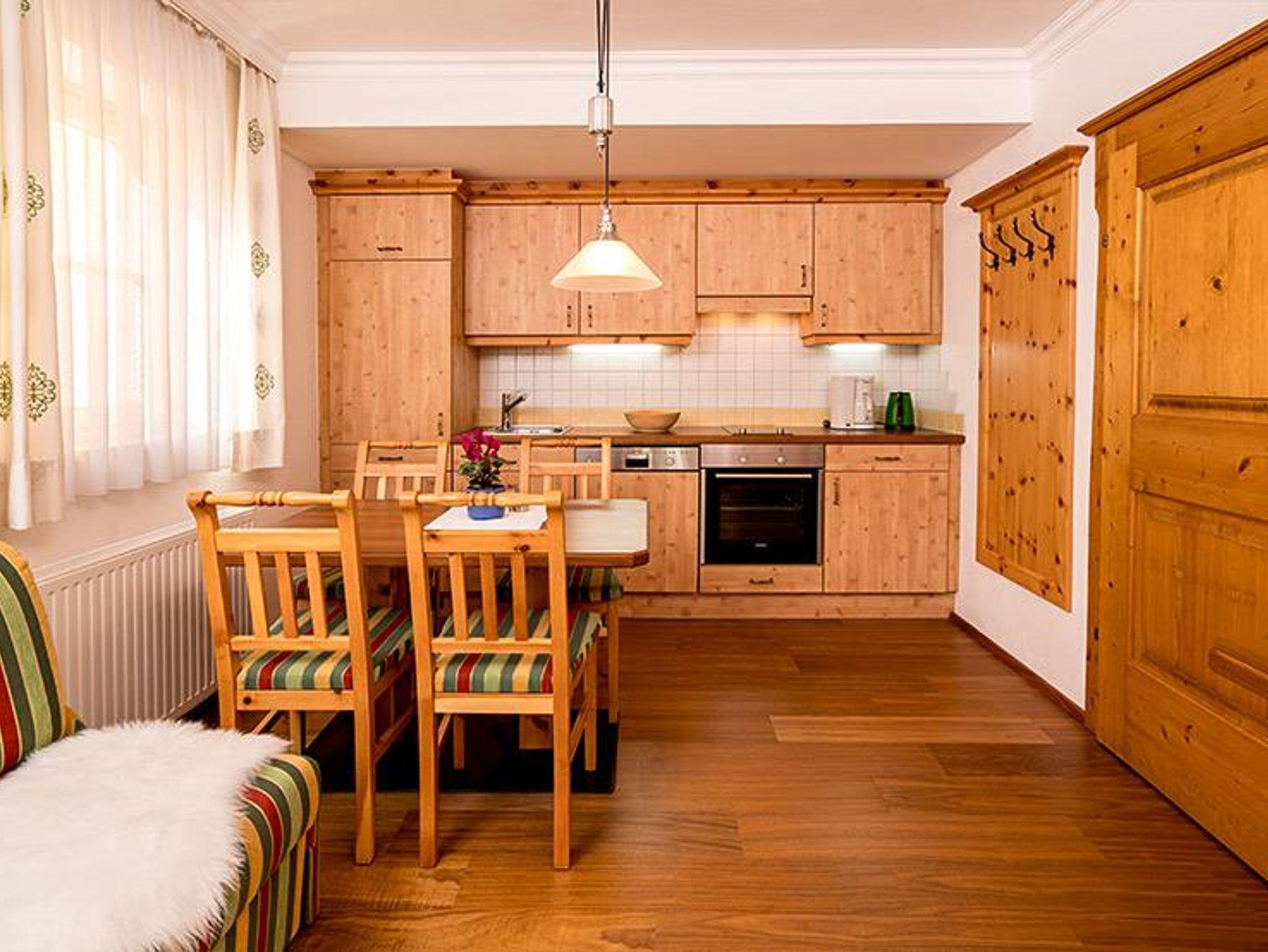 Wohltuendem Zirbenholz eingerichtet Doppelzimmer Wohnraum mit Schlafcouch und Essbereich SAT-TV W-LAN Voll ausgestattete Küchenzeile (Herd, Bckofen, Geschirrspüler, Kühlschrank, Kaffeemaschine, Wasserkocher) Bad Separates WC Zentralheizung Balkon mit traumhaftem Bergblick Mit Zirbenholz eingerichtet
