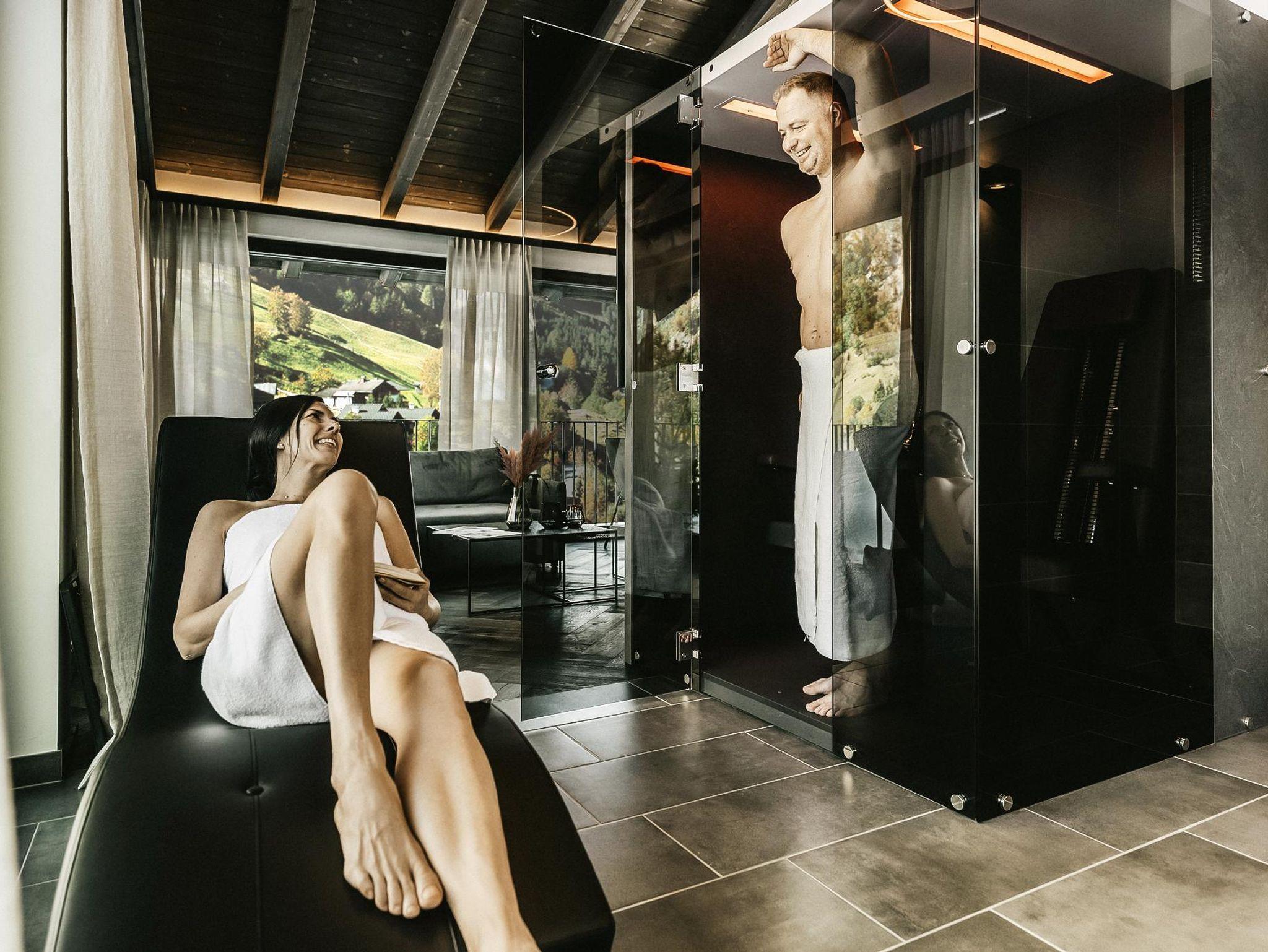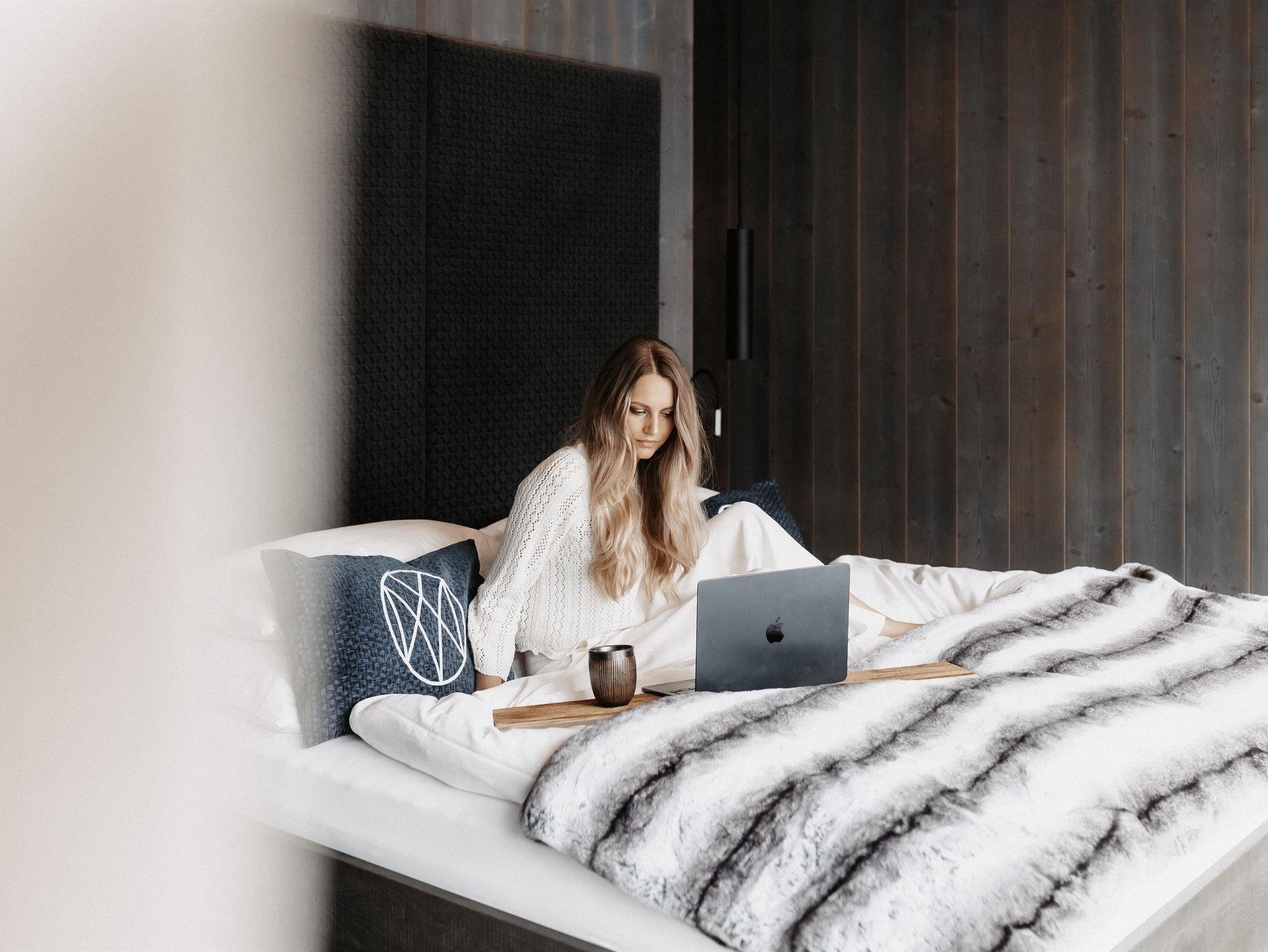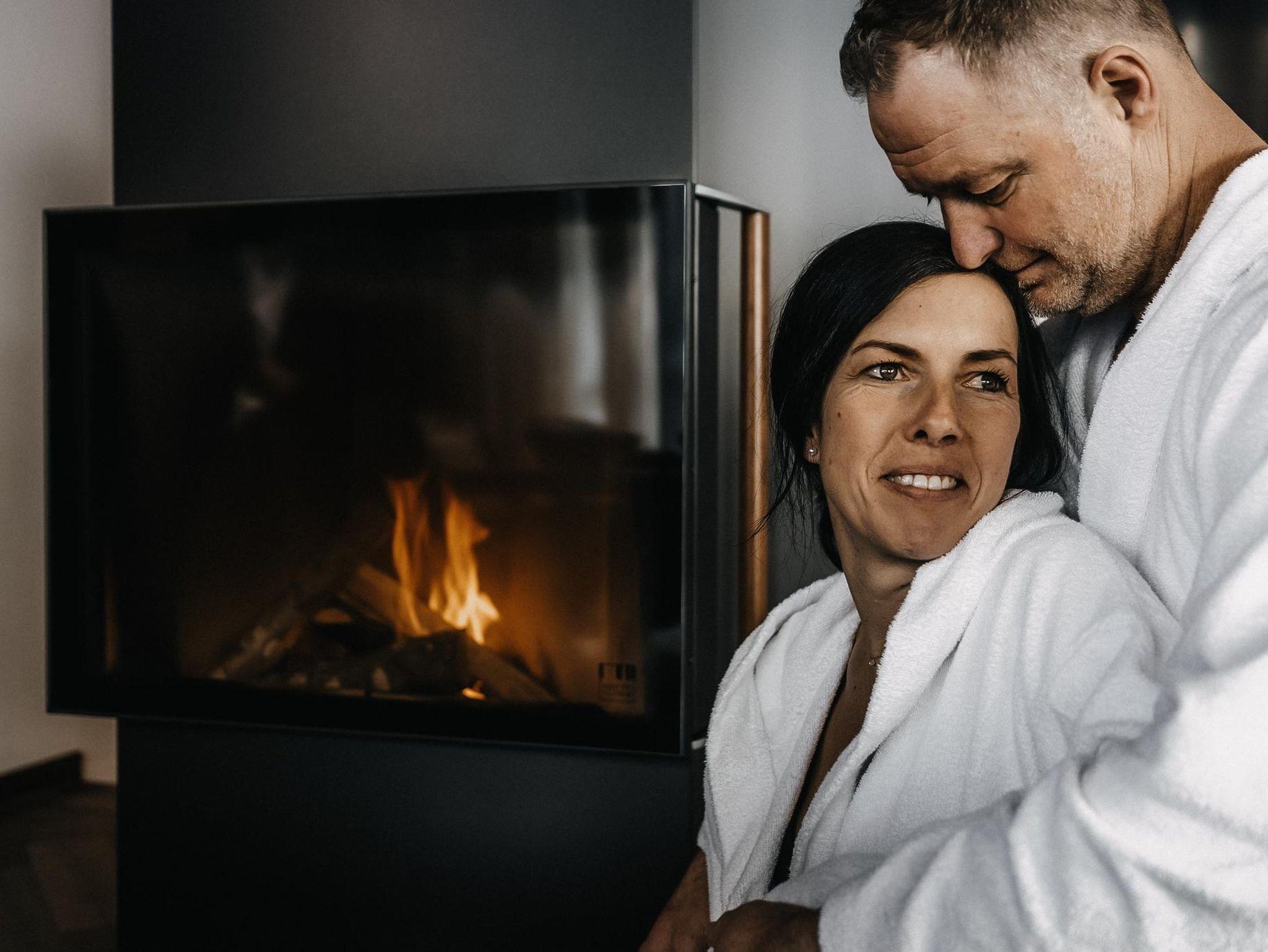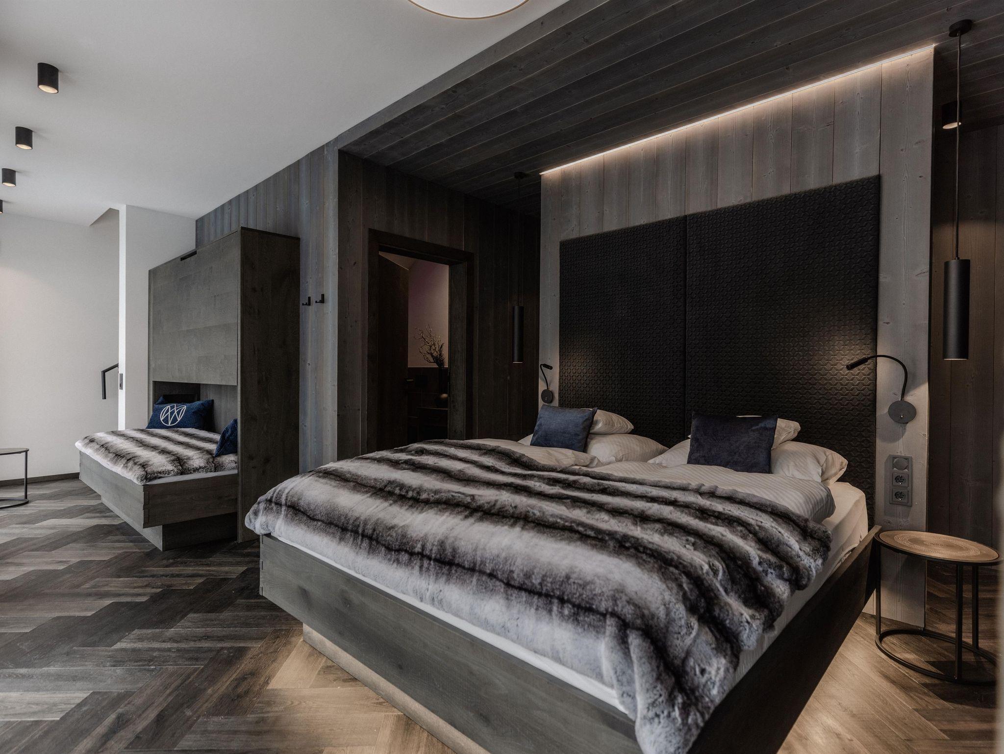 Auf 3 Stockwerken verteilt stehen drei Schlafzimmer inklusive privatem Badezimmer zur Verfügung. Im Doppelzimmer im UG bietet sich ein beeindruckender Blick durch die große Glasfront, die anderen Schlafzimmer sind direkt bei Wellness- und Wohnbereich. Wir achten auf Naturmaterialien und Details, der Designerholzkamin im Wohnbereich ist ein besonderes Highlight.