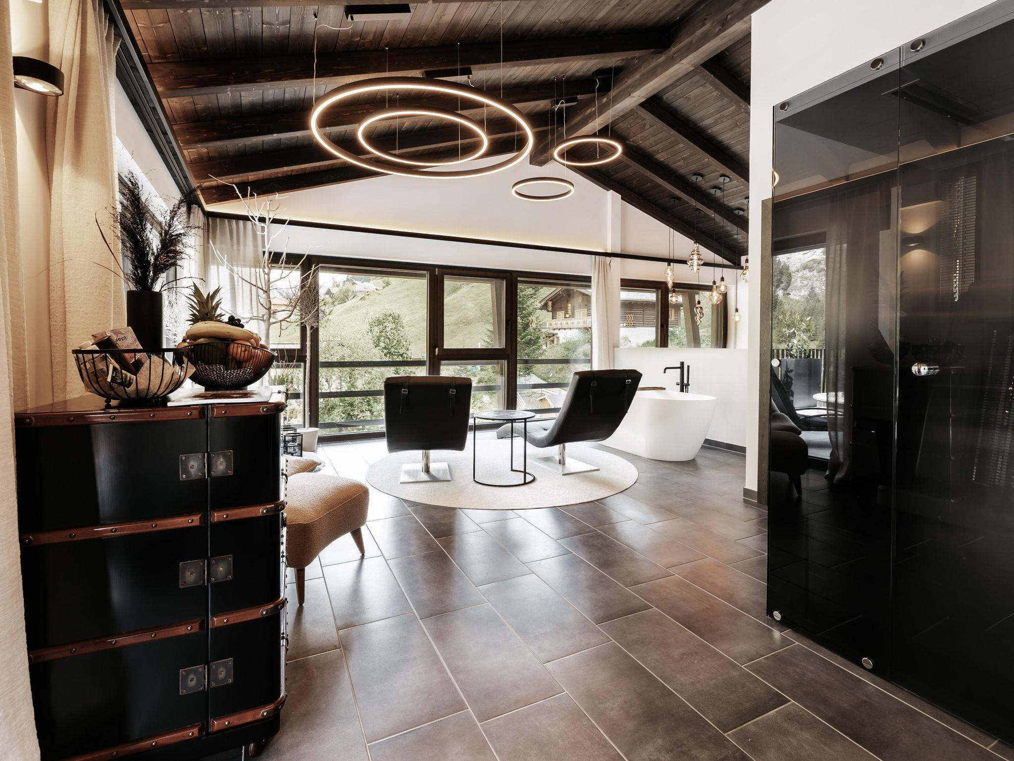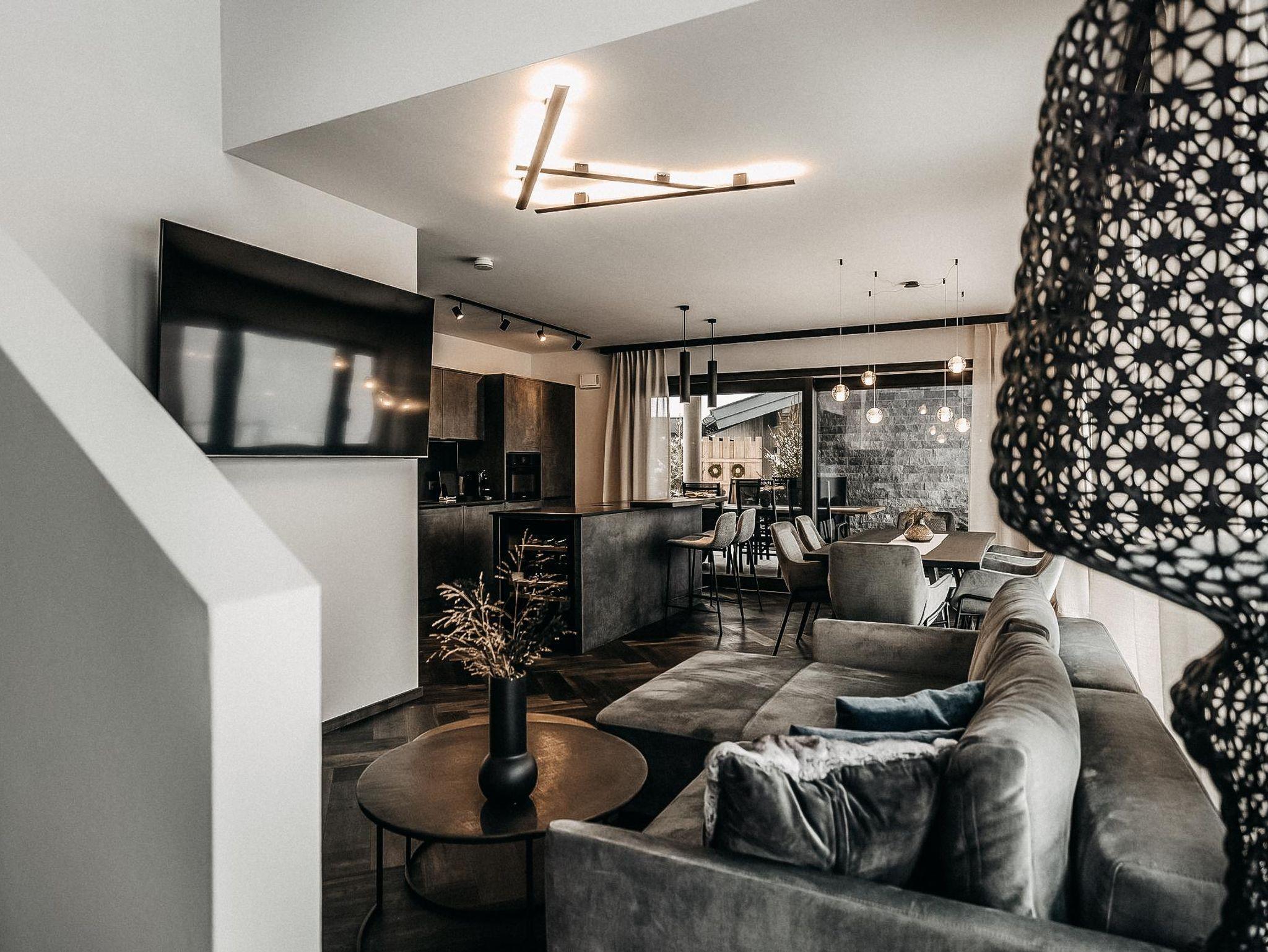 Luxus über 3 Stockwerke: Mit dem offen gebautem Dachstuhl, den großen Glasfronten und dem privaten Wellnessbereich genießen unsere Gäste die Ruhe im Chalet Hohe Tauern, ohne auf Komfort und Design verzichten zu müssen. Mit 150m² Wohnfläche, 45m² Terasse, 100m2 Garten und 40m² Outdorküche beleiben keine Luxuswünsche offen.