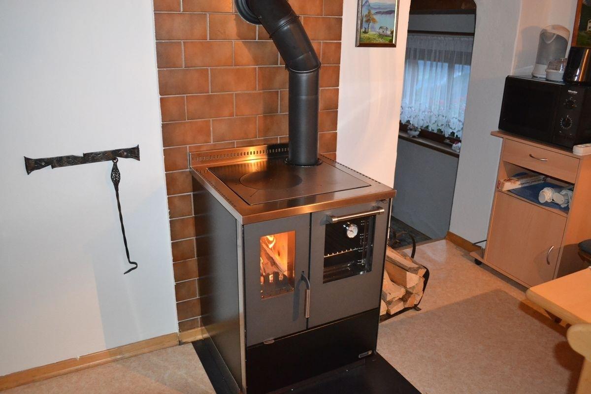 Der Wohnraum mit gemütlicher Couch lädt zum Verweilen ein. SAT-TV und CD-Player sorgen für Unterhaltung. Beheizt wird das Ferienhaus über eine Pellets- und Holzheizung – für wohlige Wärme und echtes Hüttenfeeling.