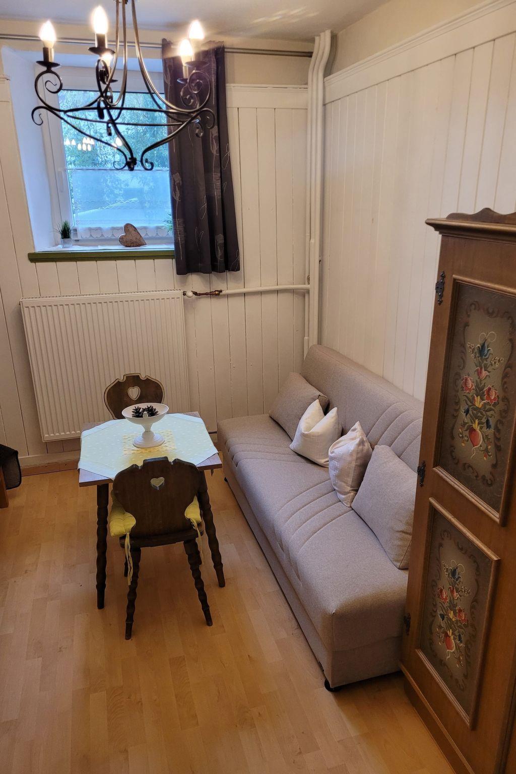 Inside, the spacious Edelweiss holiday flat, comfortably located on the second floor, with space for up to 8 people in 3 bedrooms, invites you to relax and unwind. With a bathroom equipped with both a shower and a bathtub and a separate living room offering additional comfort and privacy, this retreat is perfect for families and groups. The flat has its very own charm thanks to its own entrance, which conveys a feeling of exclusivity.