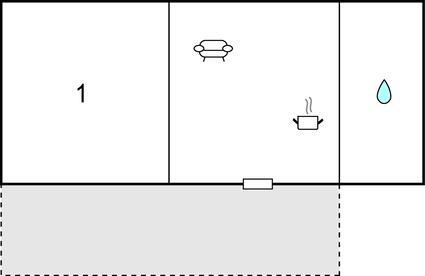 Opholdsstue/køkken - 2 Sovepladser. (Sofa, madras eller lignende).