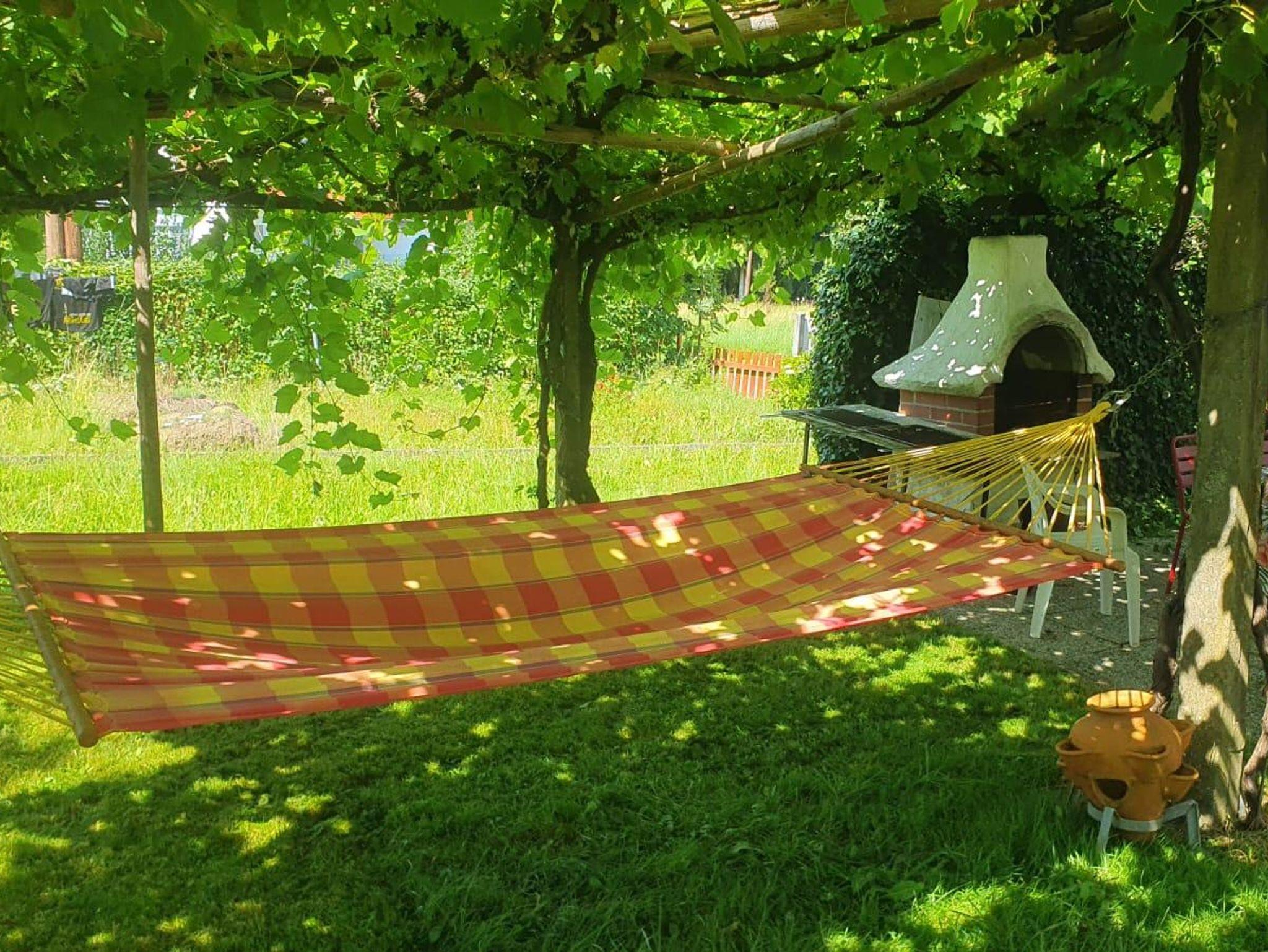 Das freistehende Haus überzeugt mit einem großzügigen, eingezäunten Garten, der keine Wünsche offenlässt: Ein Außenkamin sorgt für stimmungsvolle Abende, ein gemütlicher Sitzplatz lädt zum Verweilen ein und in der Hängematte lässt sich wunderbar entspannen.