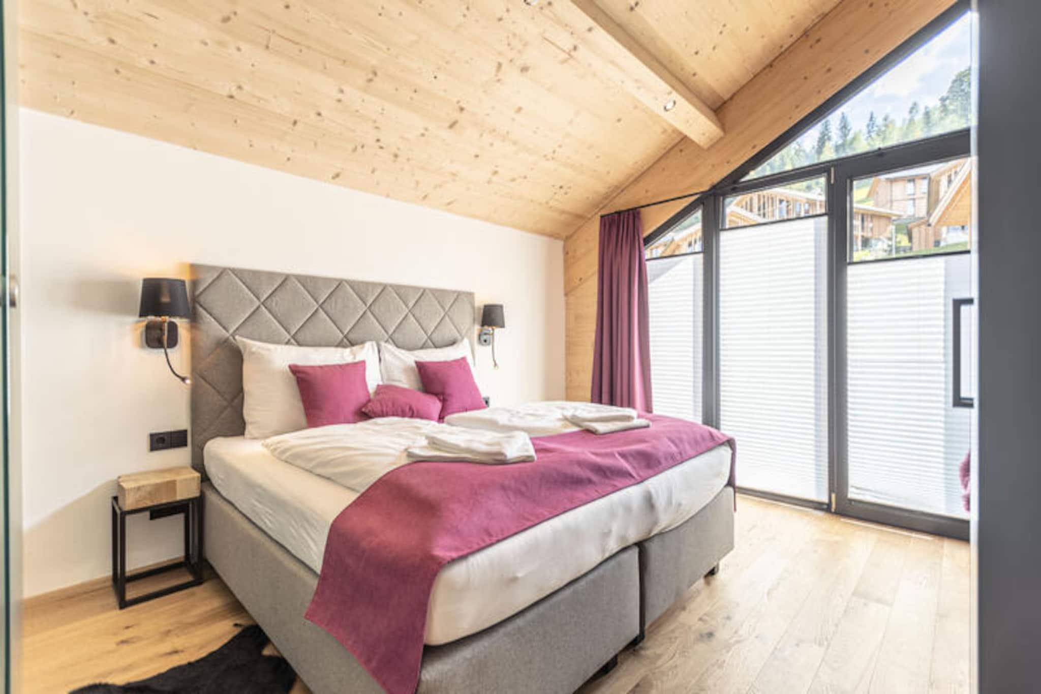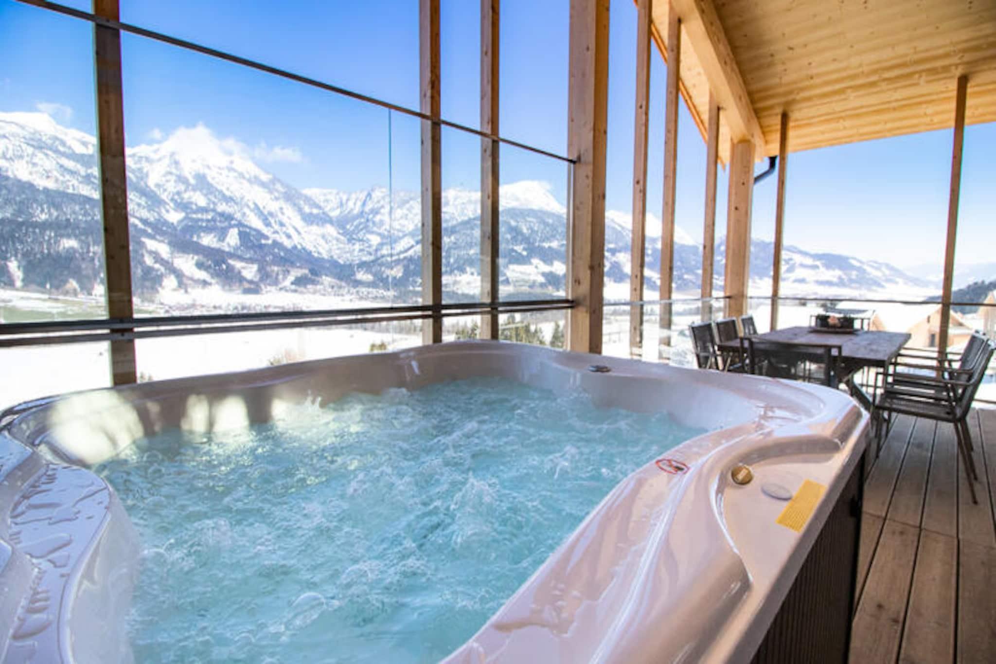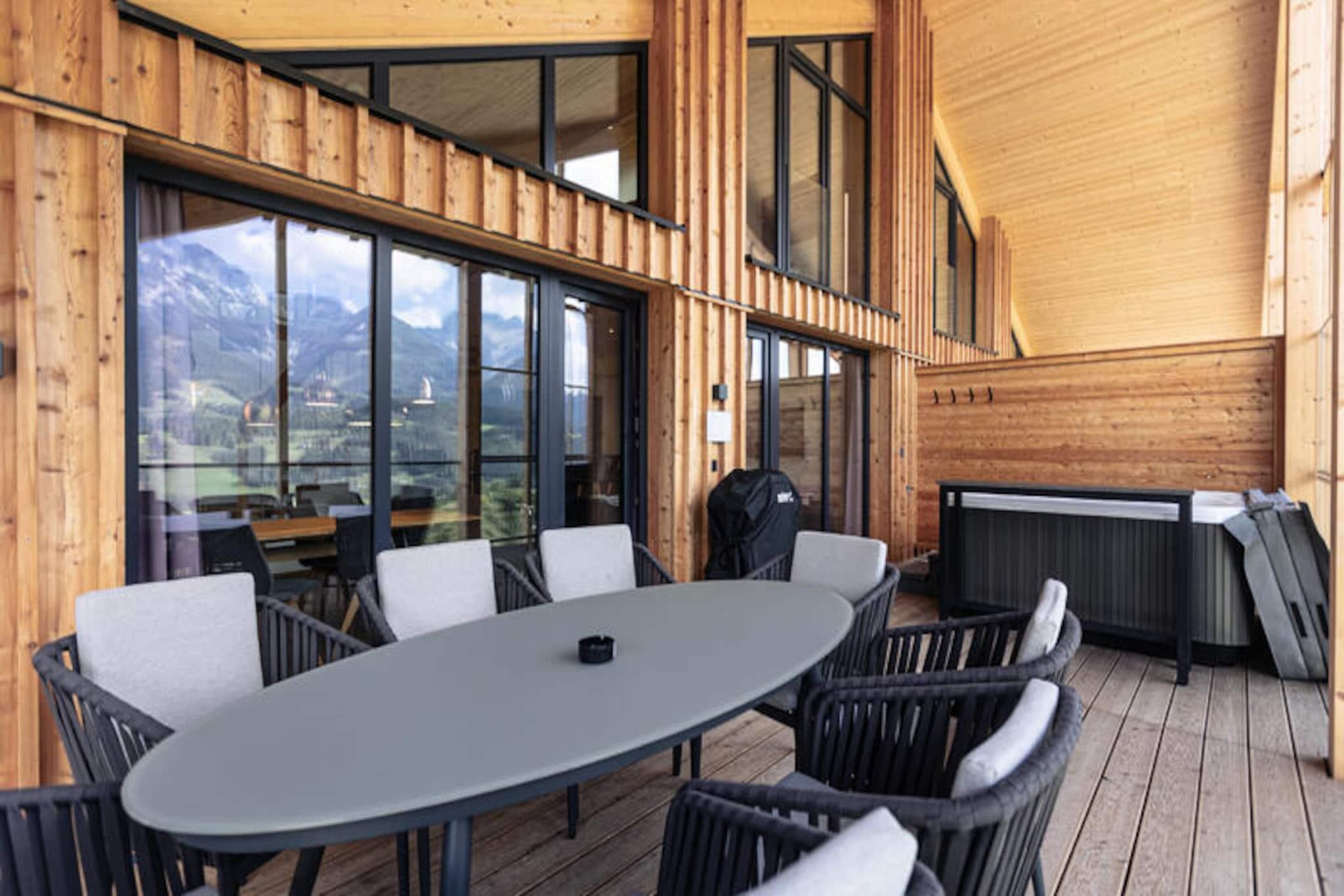 Hvor de majestætiske Dachstein-bjerge omfavner dalen, tilbyder denne elegante alpine lejlighed et perfekt tilflugtssted for familier og venner. Med sit moderne design og varme atmosfære inviterer ejendommen dig til at fordybe dig i Østrigs alpine charme. Forestil dig at vågne op til den fredfyldte udsigt over snedækkede tinder og træde ud på pisterne kun 250 meter fra din dørtrin. Uanset om du er her for vintereventyr eller sommervandreture, lover denne beliggenhed uforglemmelige øjeblikke i naturen. \n\nLejligheden strækker sig over 120 m² og har komfortabel plads til op til seks gæster fordelt på tre smukt indrettede soveværelser. Den åbne opholdsstue er badet i naturligt lys, hvilket skaber et hyggeligt rum at slappe af efter en dag med udforskning. Køkkenet i amerikansk stil er fuldt udstyret med moderne apparater, hvilket gør det nemt at tilberede solide måltider. Forkæl dig selv med luksusen af ??en privat sauna og jacuzzi, perfekt til afslapning og foryngelse. Terrassen og balkonen er de ideelle steder at nyde den panoramiske udsigt over bjergene, mens du nyder din morgenkaffe eller et aftenglas vin.\n\nEjendommen ligger ved foden af ??Hauser Kaiblings skiløjper og er et paradis for skientusiaster. Om sommeren lokker de frodige, grønne stier til både vandrere og cyklister. Den charmerende by Haus im Ennstal ligger kun 2 km væk og byder på lokale restauranter, butikker og en indbydende alpin atmosfære. Nærliggende attraktioner omfatter golfbanen GC Schladming Dachstein, søen Badesee Pichl og vandlandet Erlebnistherme Amade til familiesjov. Salzburg Lufthavn og den fantastiske nationalpark Berchtesgaden er også inden for rækkevidde for dagsture.\n\nUanset om du søger spændende udendørsaktiviteter eller rolige øjeblikke omgivet af natur, tilbyder dette alpine tilflugtssted den perfekte balance mellem komfort og eventyr. Lad de betagende landskaber og gennemtænkte faciliteter gøre dit ophold virkelig specielt.
