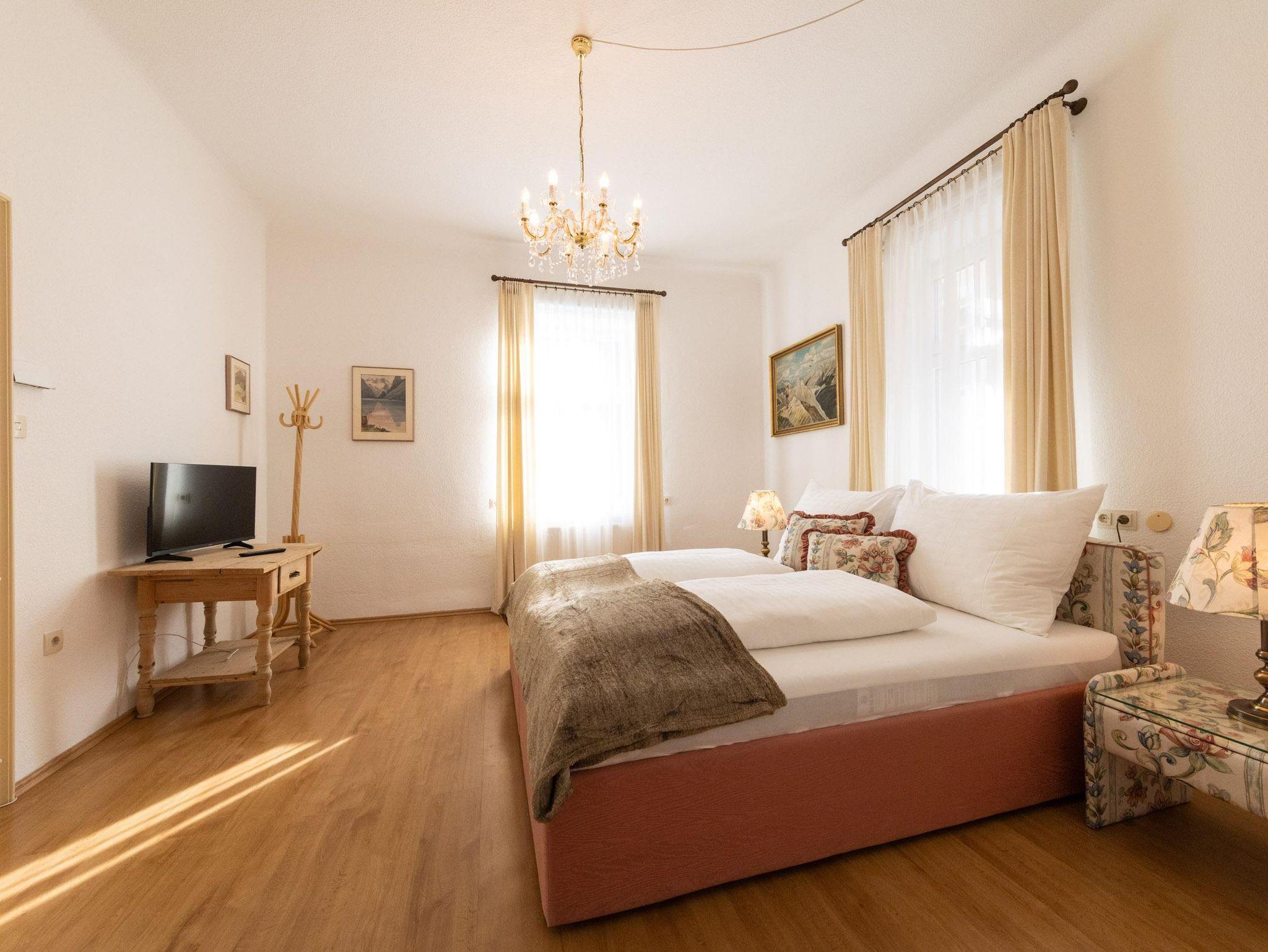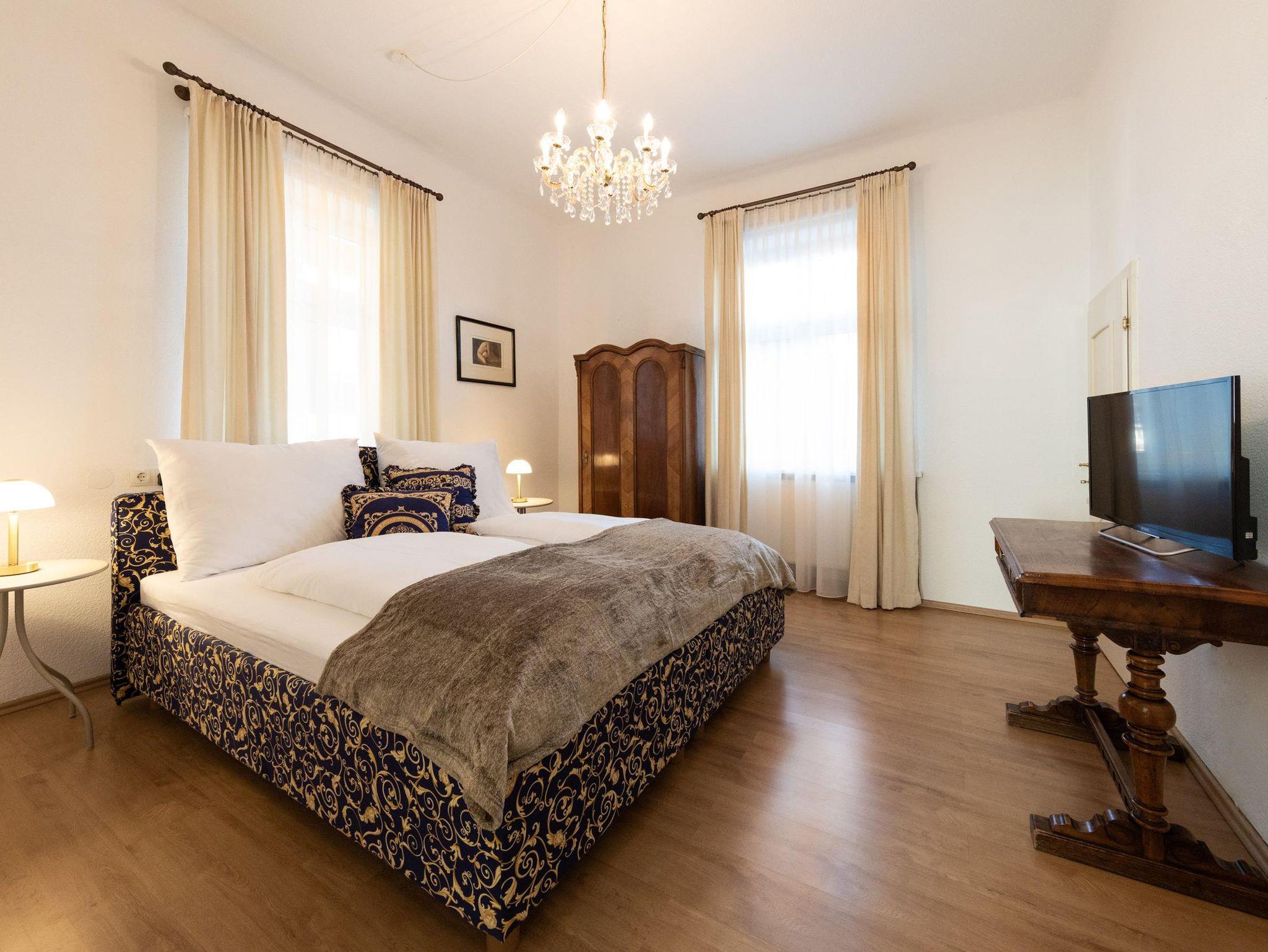 Das lichtdurchflutete Appartement Hochparterre bietet auf 95 m² Platz für bis zu 4 Personen. Zwei Schlafzimmer mit Flachbild-TV, ein Badezimmer mit Badewanne, Dusche und WC, ein separates WC, eine voll ausgestattete Küche mit Backofen, E-Herd, Geschirrspüler, Kühlschrank mit kleinem Gefrierfach, Mikrowelle, Toaster und Nespresso Maschine, ein gemütliches Wohnzimmer mit Flachbild-TV sowie der eigene Zugang über die Veranda schaffen ein stilvolles Zuhause mit dem besonderen Charme der historischen Villa Stephanie.