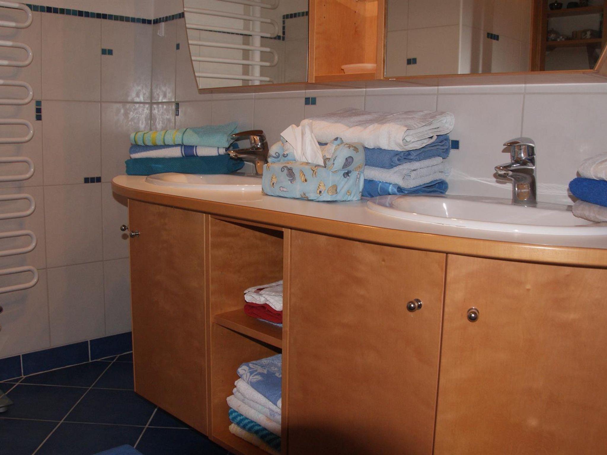 3 seperate Schlafraeume(2 Zweibettzimmer+1 Zustellbett bzw.Gitterbett,1 Dreibettzimmer)sowie ein Wohnschlafraum mit Doppelliege (180x200qcm) und Flat-screen ,eine überkomplette Kueche und ein eigener Essraum bieten Platz bis max.10 Personen. Toilette und Bad mit extra Doppelwaschtisch, Handtuchtrockner und Regendusche sind getrennt, 2 Gäste - Garagenplätze, absperrbarer Schikeller mit Schuhtrockner.