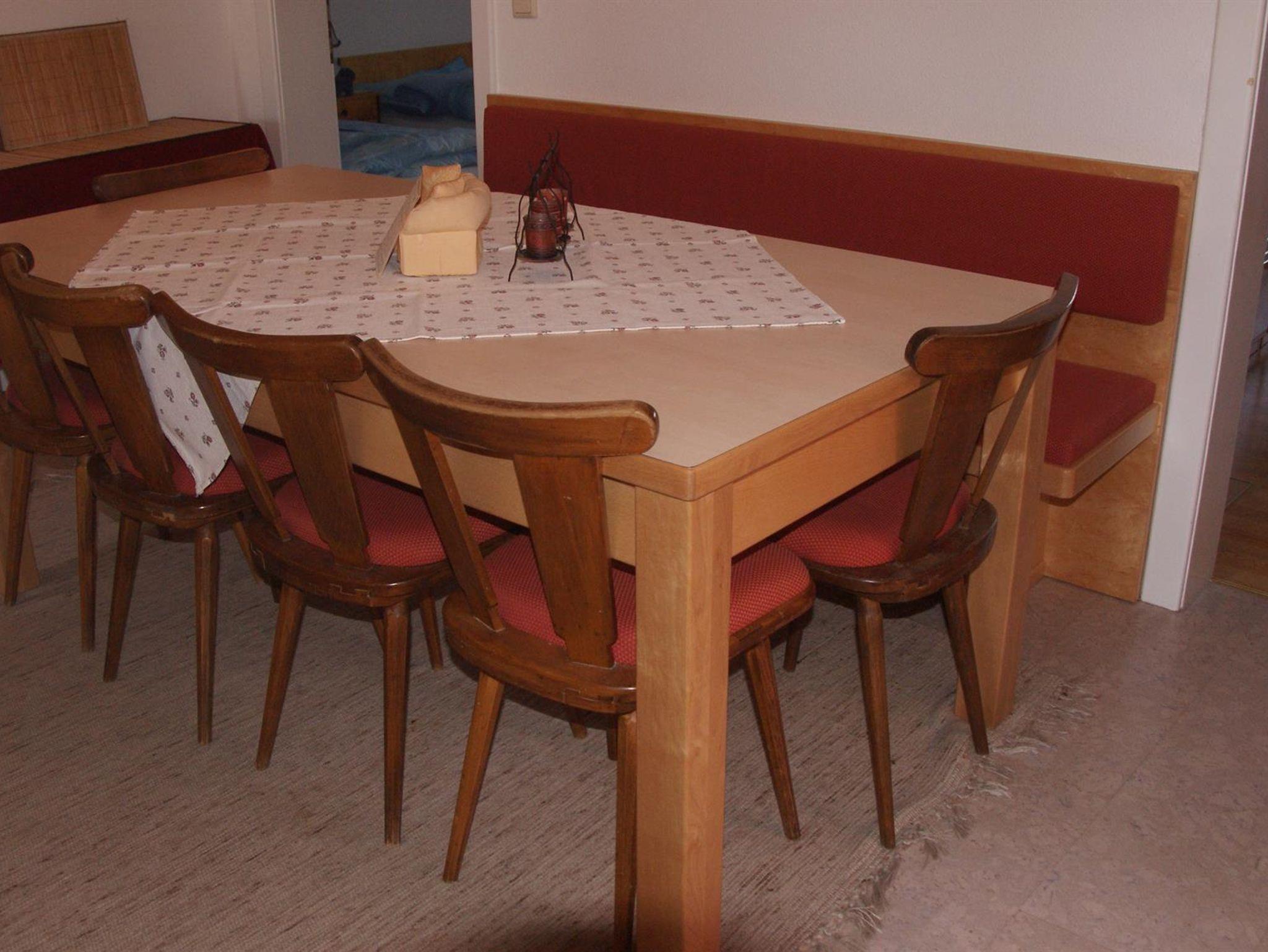 Unsere gemuetliche Dachgeschoßwohnung ist mit viel Liebe zum Detail ausgestattet. 2 Zweibettzimmer(+1 Gitter-bzw.Zustellbett), 1 Dreibettzimmer und 1 Wohnschlafraum (Doppelliege) bieten Rueckzugsbereich für alle Personen. Eine modern ausgestattete Kueche, ein Essraum, 1 Bad mit Doppelwaschtisch und 1 WC komplettieren die 80m2 Wohnung. Unser Kücheninventar ist besonders reichhaltig ausgestattet, doppelt vorhandenes Geschirr, mehr als 30 Gewürze, Raclette, Grill oder Fonduegeschirr erleichtern Ihnen Ihre Essensplanung und garantieren Ihnen gemütliche Stunden im Familienkreis oder in der Freundesrunde.