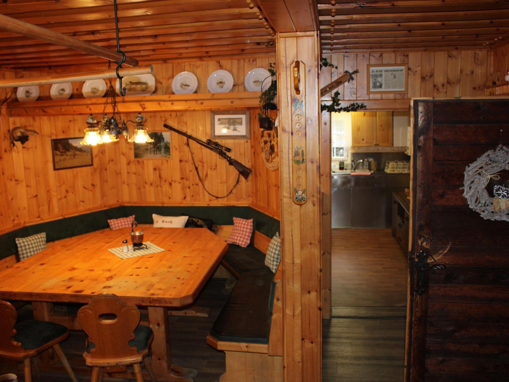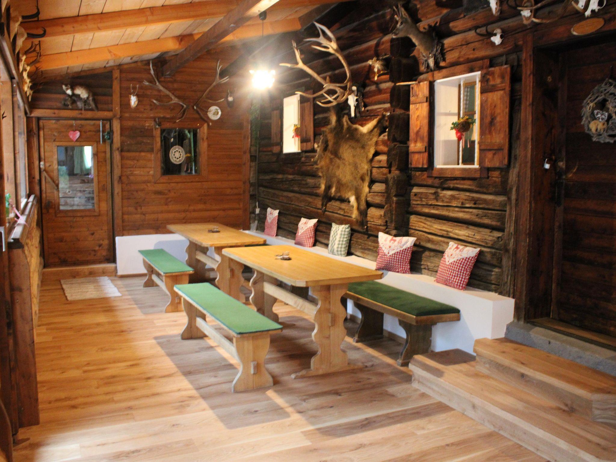 Unsere Selbstversorgerhütte verfügt über 3 Doppelzimmer, 1 Doppelzimmer mit Stockbett, 1 Küche mit großer Essecke, Küchenherd, Backofen, Kaffeemaschine, TV und 1 Vorratskammer mit Spüle u. Kühlschrank sowie 1 Wintergarten mit Liegen u. Esstisch mit Stühle. 2 WC und 1 großes Bad mit Waschtisch u. Dusche