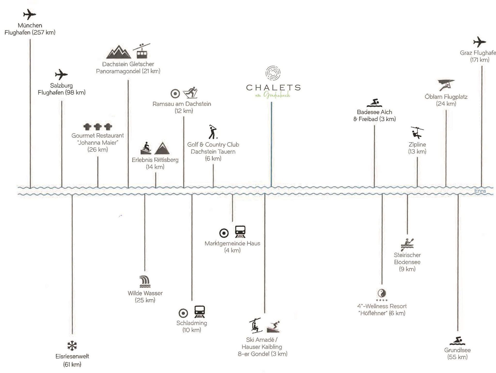 Die exklusive Lage der Naturchalets am Gradenbach in Weissenbach bei Haus– umgeben von Wald, Wiesen & Wasser, eingebettet zwischen dem imposanten Dachstein Massif und den Schladminger Tauern mit Blick auf den Hauser Kaibling, ist wie geschaffen für eine Auszeit wie es Ihnen gefällt. Nahtlos in die alpine Naturlandschaft integriert und garantieren eine Auszeit in absoluter Freiheit. Für die einen ist es ein Naturerlebnispark in all seinen Facetten, für die anderen ein Ort, der so viel in kurzer Entfernung zu jeder Jahreszeit bietet und eine Vielfalt an Freizeitangeboten mit Erlebnisfaktor.