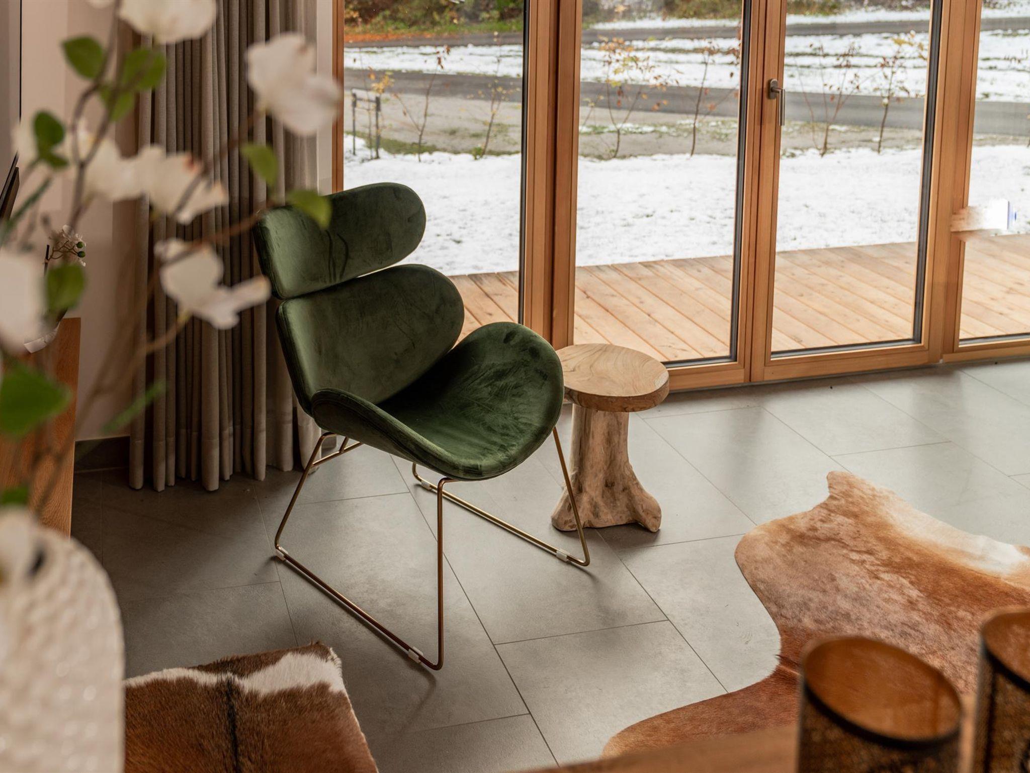 Alle Chalets sind nach SÜDEN ausgerichtet und tauchen dadurch in warmes Tageslicht ein. Die großzügigen Glasfronten und die luftigen Raumhöhen bis zu 5m verbinden alpin-moderne Interieur mit modernster Technologie.