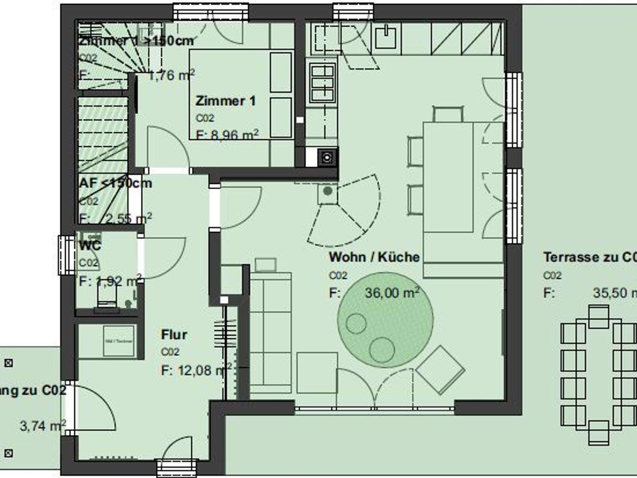 • 35 m² Sonnenterrasse mit Terrassenmöbel