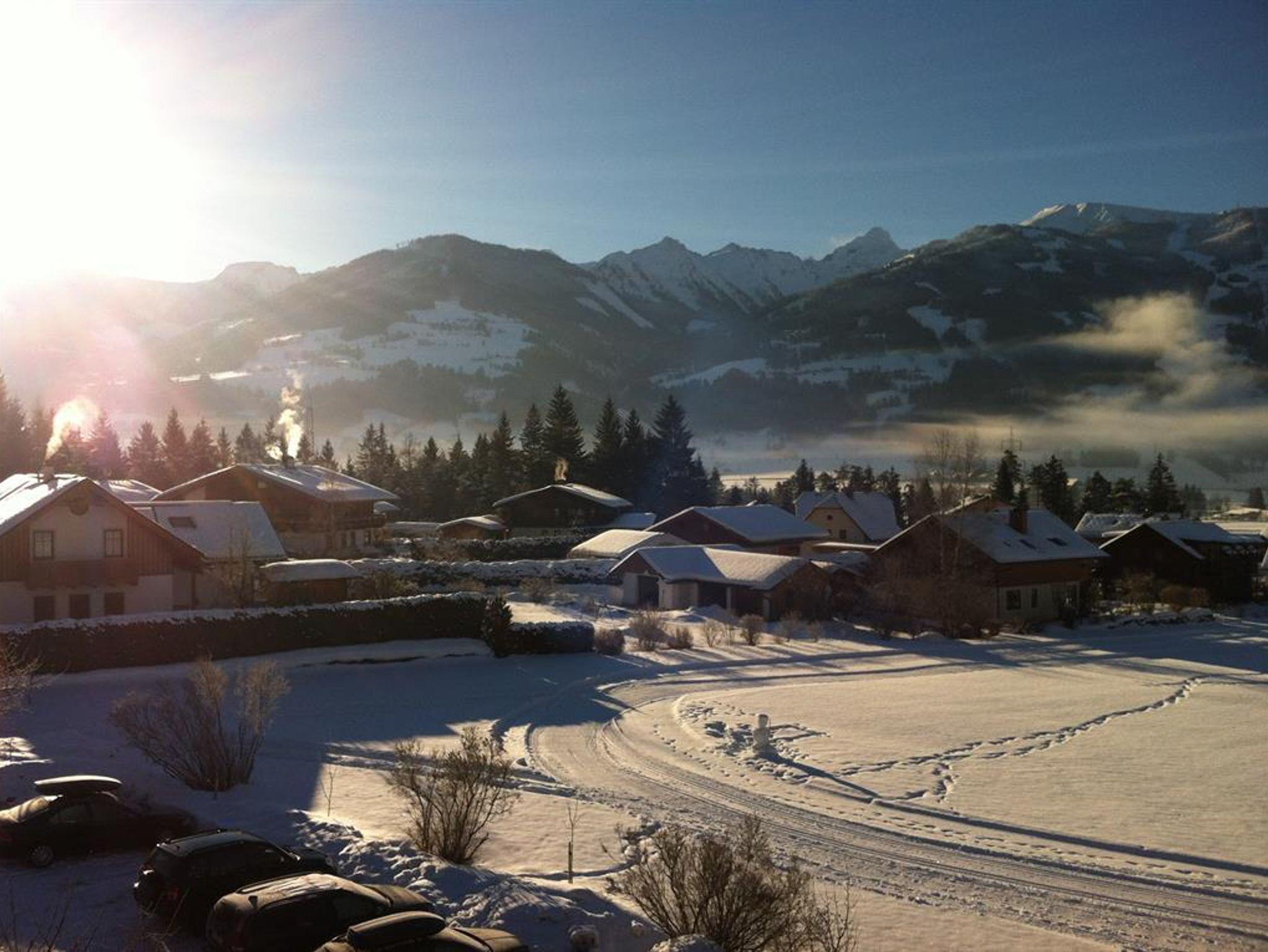 Im Winter können Sie Ihr Auto getrost auf unseren ausreichend vorhandenen Parkplätzen abstellen. Der Skibus bringt Sie in 3 bis 4 Minuten zur Hauser Kaibling Seilbahn, dem östlichen Ersteinstieg in die Schladminger 4-Berge-Skischaukel. Nachdem die Skibushaltestelle nur 50 m von unserem Haus entfernt ist, steht einem entspannten Skitag nichts im Wege. Am Abend deponieren Sie Ihre Skier in unserem Skiraum. Wer den Winter eher von seiner ruhigen Seite genießt, nutzt die Winterwanderwege oder Langlaufloipen, die direkt am Haus vorbeiführen. Besonders empfehlenswert sind abendliche Pferdeschlittenfahrten in unsere tiefverschneiten Wälder.