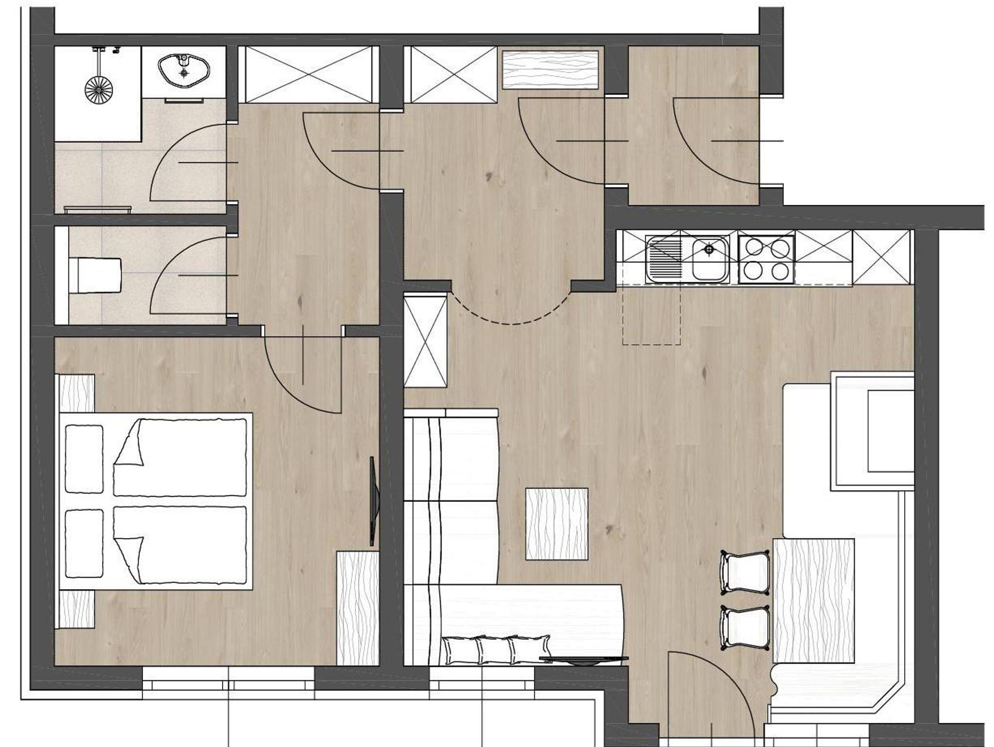 Neue, heimelige Wohlfühlwohnung. 1 Schlafzimmer mit Dusche und WC extra. Gemütlich ausgestattete Wohnküche mit Kachelofen, Geschirrspüler, Mikrowelle, Backrohr, Flatscreen, Ausziehcouch, großzügigen Balkon, . . .