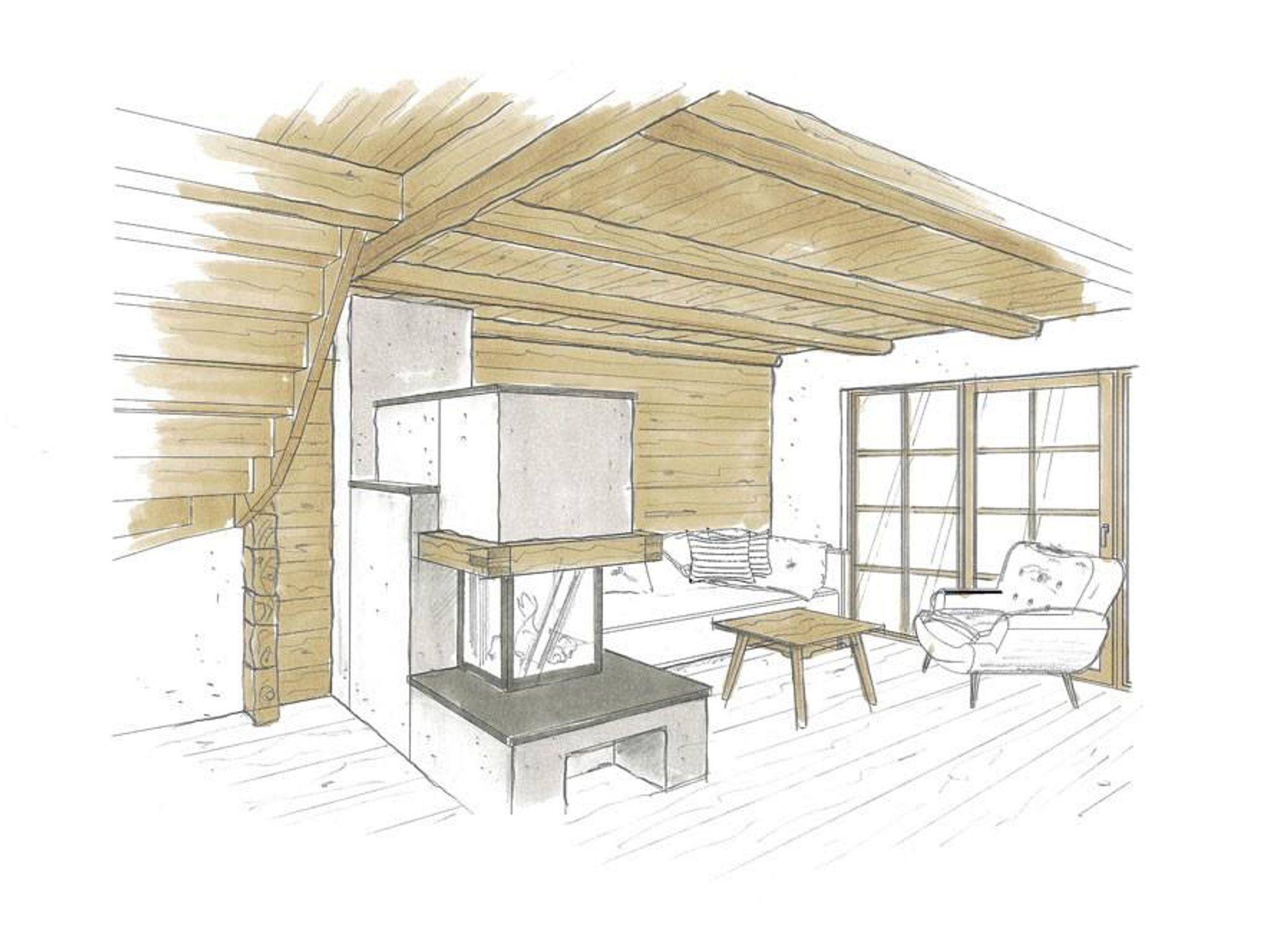 - Gemütlicher Wohnraum mit einem großen Kachelofen zum Aufwärmen und Genießen, moderne Sitzmöbel zum Lesen, in die Berge schauen und entspannen.