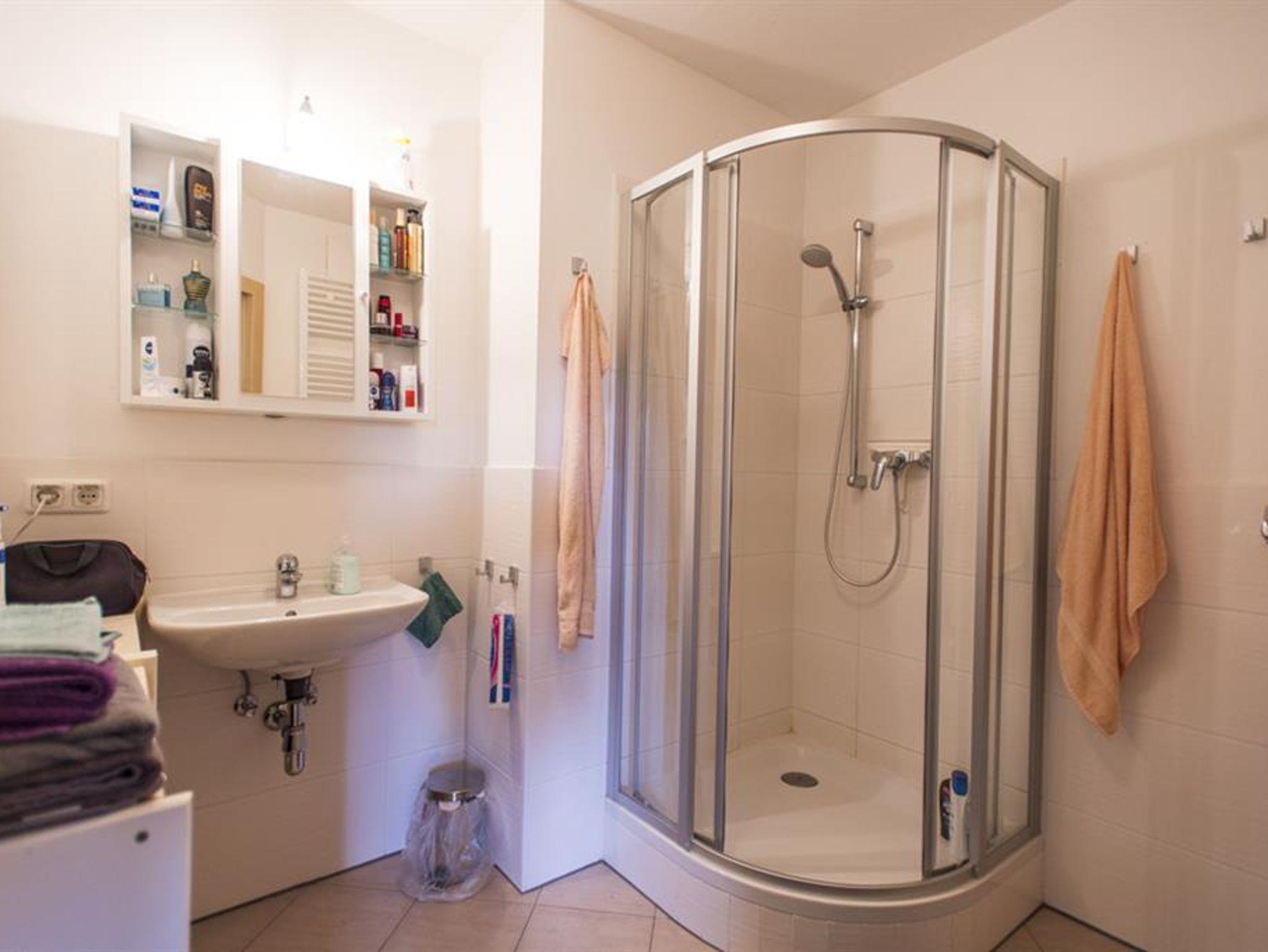 - Badezimmer mit Dusche und Waschtisch