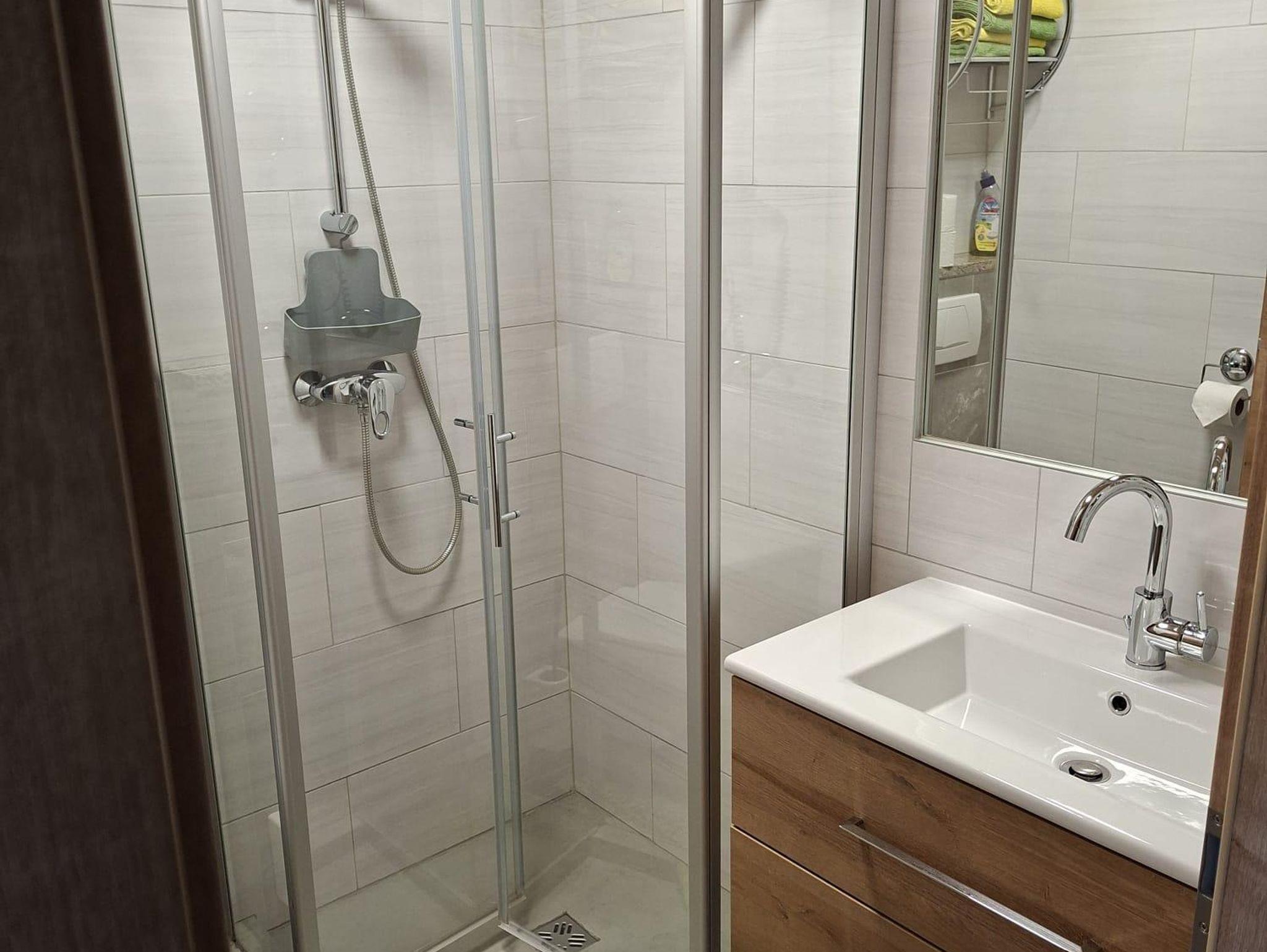 Unser Apartment mit Blick auf die Berge ist mit einem Vorraum, einem Schlafzimmer, einem Wohnschlafraum (mit Sat-TV) und einer komplett eingerichteten Kochnische sowie einem großen Balkon ausgestattet.