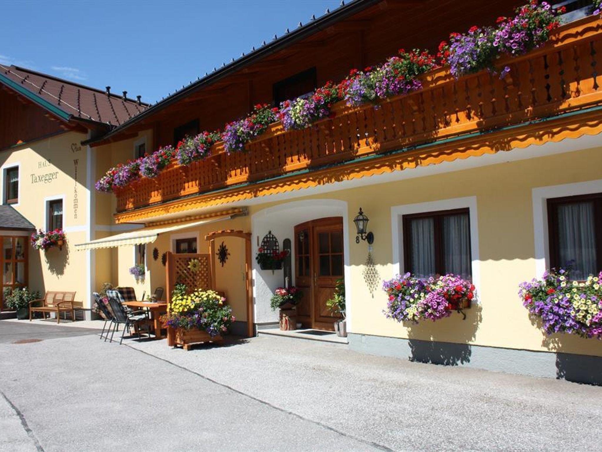 Umgeben von Wiesen und Wäldern in ruhiger, sonniger Lage auf 1.100 m Seehöhe wohnen Sie in unseren 5 neu errichteten Nichtraucher-Appartements. Wir bieten verschiedene Wohnungstypen für 2 bis 7 Personen an. Je nach Wohnungsgröße stehen Ihnen ein bis zwei getrennte Schlafzimmer zur Verfügung. Jedes Appartement hat zusätzlich ein Wohn-Schlafzimmer, eine voll ausgestattete Küche sowie Badezimmer mit Dusche und WC. Sat-TV und gratis W-Lan sind im Haus Taxegger selbstverständlich vorhanden. Was Sie aber ganz besonderes genießen werden, ist die faszinierende Aussicht vom Balkon der Appartements auf das Dachstein-Massiv.
