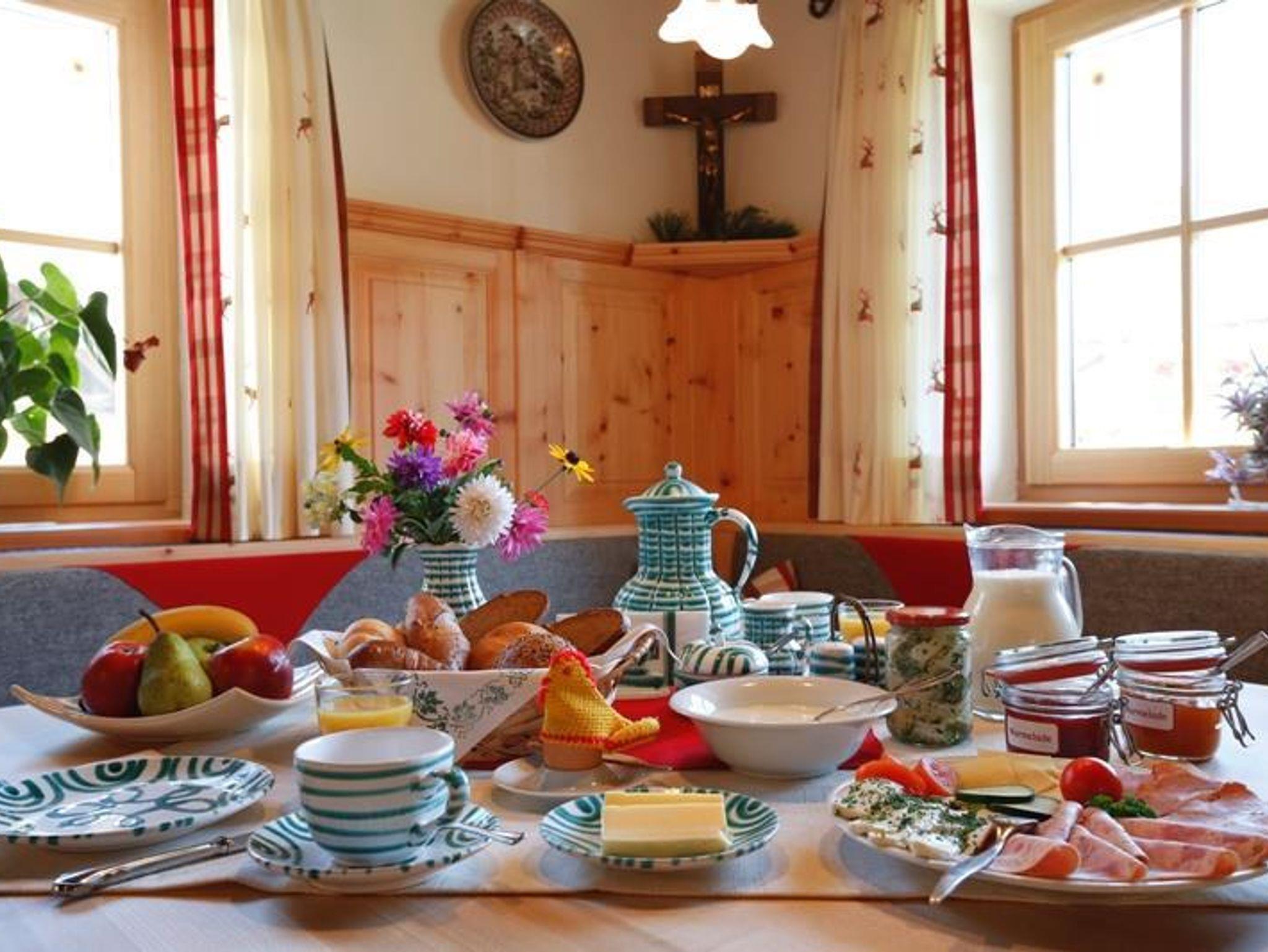 Morgens genießen Sie in der gemütlichen Bauernstube ein abwechslungsreiches Frühstück mit vielen selbstgemachten Produkten wie zB Marmelade, Käse, Aufstriche, Joghurt. Für ein gemütliches Beisammensein am Abend steht Ihnen die Bauernstube mit Gästekühlschrank natürlich auch zur Verfügung. Im Winter genießen Sie zudem die flauschige Wärme, die der Kachelofen in dieser Zirbenstube verbreitet.