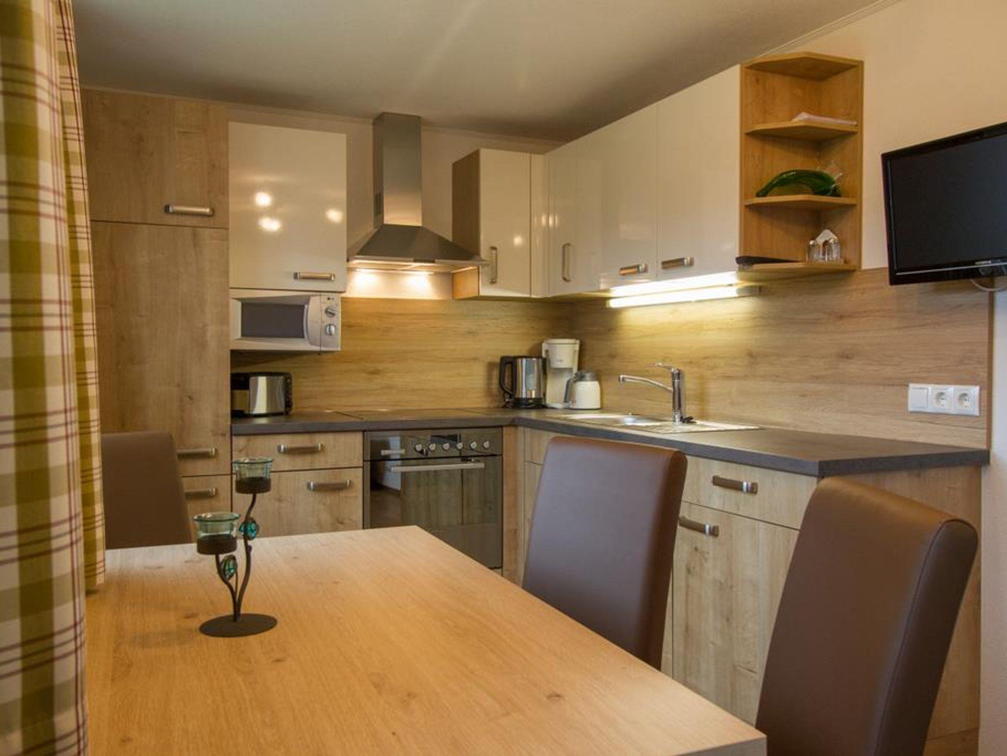 In der Küche finden Sie einen E-Herd mit Ceranfeld, Kühlschrank, Gefrierfach, Geschirrspüler, Mikrowelle, Kaffeemaschine, Toaster, Wasserkocher und Fernseher. Das Bad ist mit einer geräumigen Dusche, einem Waschtisch mit großem Spiegel und WC ausgestattet.