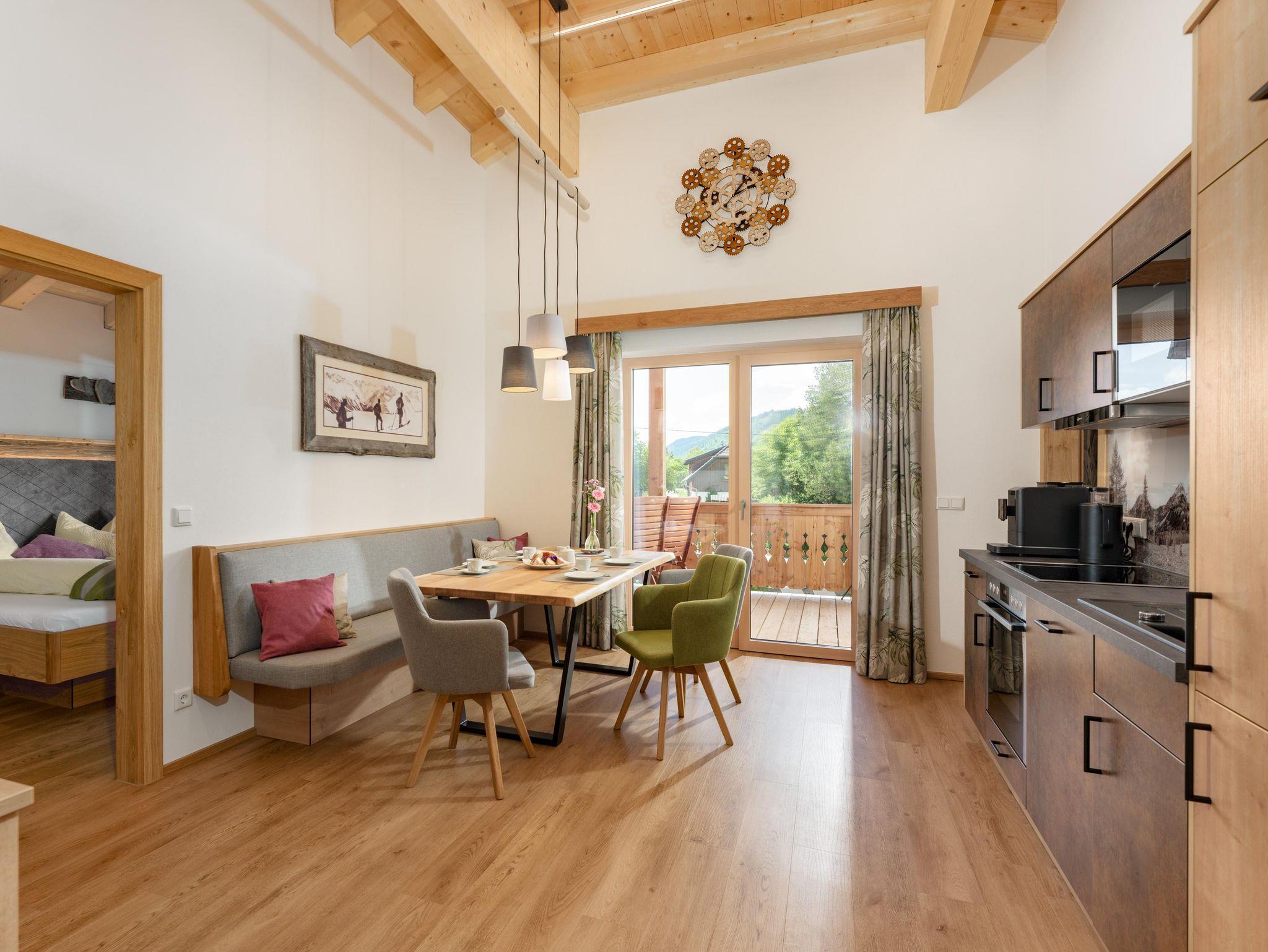 Die neu errichteten Appartements im neuen ländlichen Stil bieten eine umfassende Ausstattung für einen erholsamen Urlaub hier im Ennstal. Die zwei Appartements im Obergeschoß sind mit einem großen Balkon ostseitig und einer Terrasse westseitig ausgestattet. Es erwartet Sie eine fantastische Kulisse unserer Bergwelt.