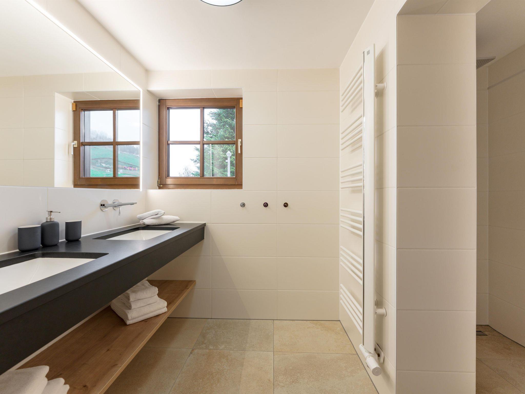 1 Bad mit Dusche, Doppelwaschtisch und Fön