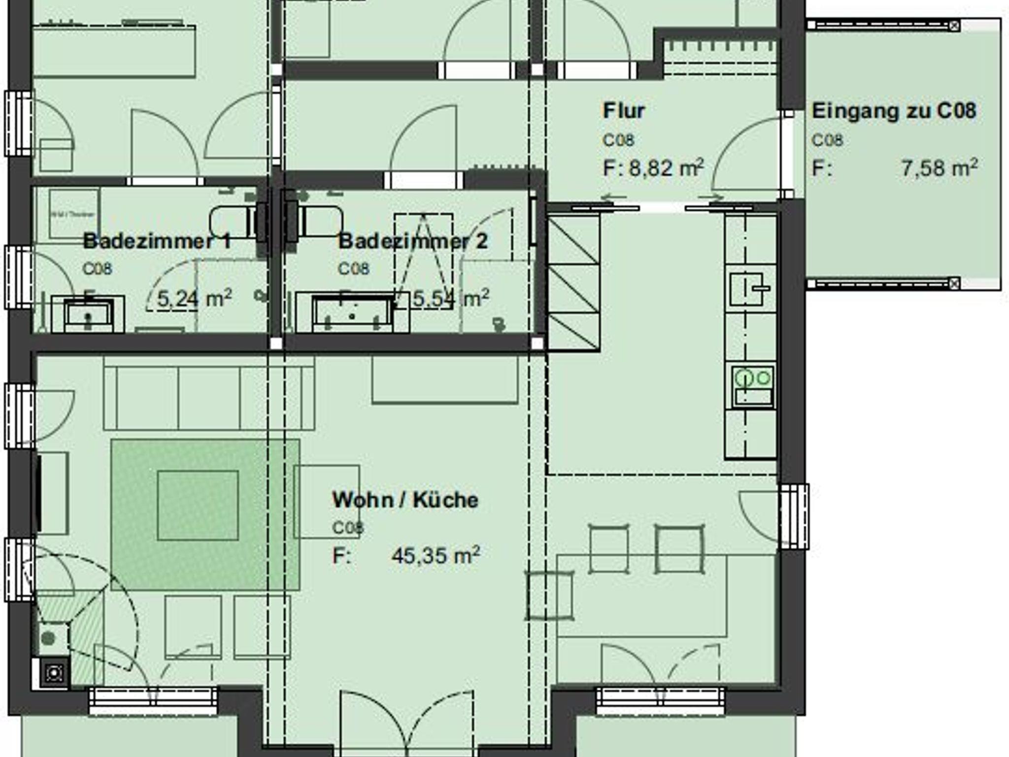 • Zwei Badezimmer mit Dusche und gesamt 2 WC´s