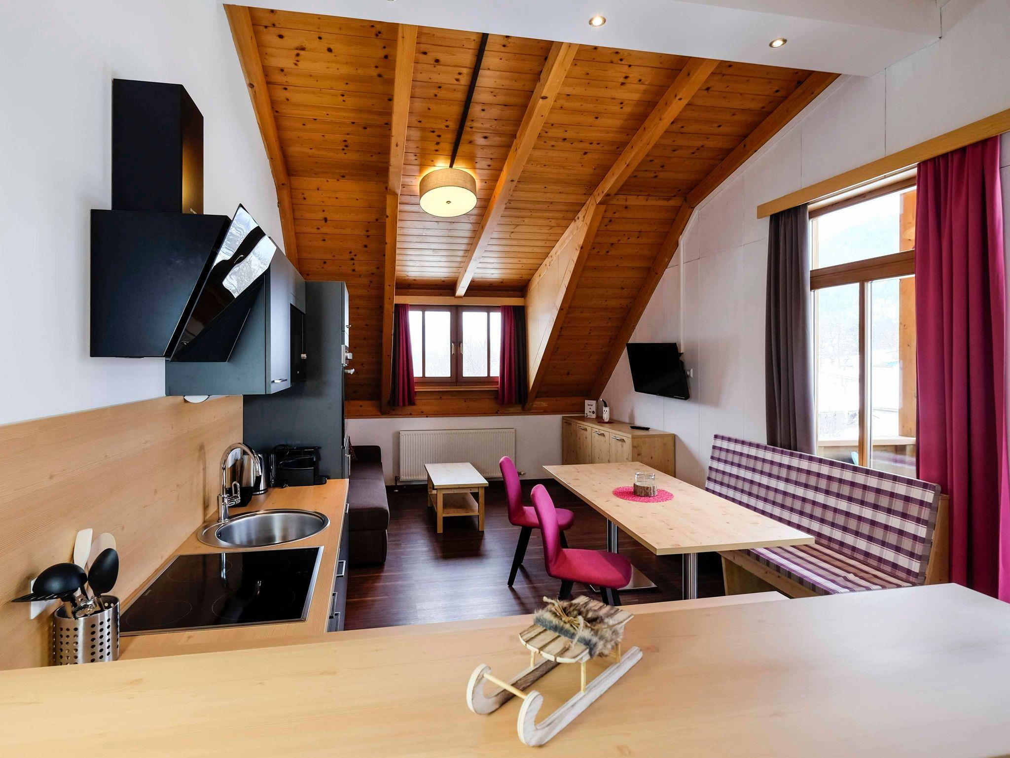 geräumige Wohnküche mit Sitzecke und Couch ,Flat Tv, freies W-lan im gesamten Hotel