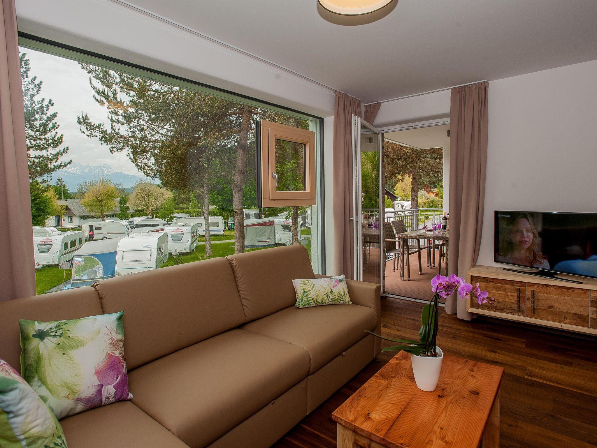 Liebevoll eingebettet zwischen den Karnischen und den Gailtaler Alpen in der Mitte des Gailtales, befindet sich 1,5 km östlich von Hermagor das 5,5 Hektar große Areal von dem ganzjährig geöffneten EuroParcs Hermagor · Nassfeld mit 250 Stellplätzen, Mobilheimen, Schlaffässern und modernen Alpin Appartements. Großzügige Stellplätze, auf Wunsch mit Komfortanschlüssen wie Strom, TV, Wasser- und Abwasseranschluss machen das Campen einfach und unkompliziert. Das Freibad (120 m² Edelstahlbecken), das Kleinkinderbecken und der Naturschwimmteich (500 m²) sind für Wasserratten ideal. Scheint einmal nicht die Sonne, kann man im Hallenbad planschen. Im AlpinSPA wird mit verschiedenen Saunen, Relax- und Massageräumen für Erholung am Ferienpark gesorgt. Mit Fitnesscenter, Restaurant und modernen Sanitäranlagen ist das Urlaubsangebot im EuroParcs Hermagor · Nassfeld als Ganzjahresplatz (1.1. - 31.12.) komplett.