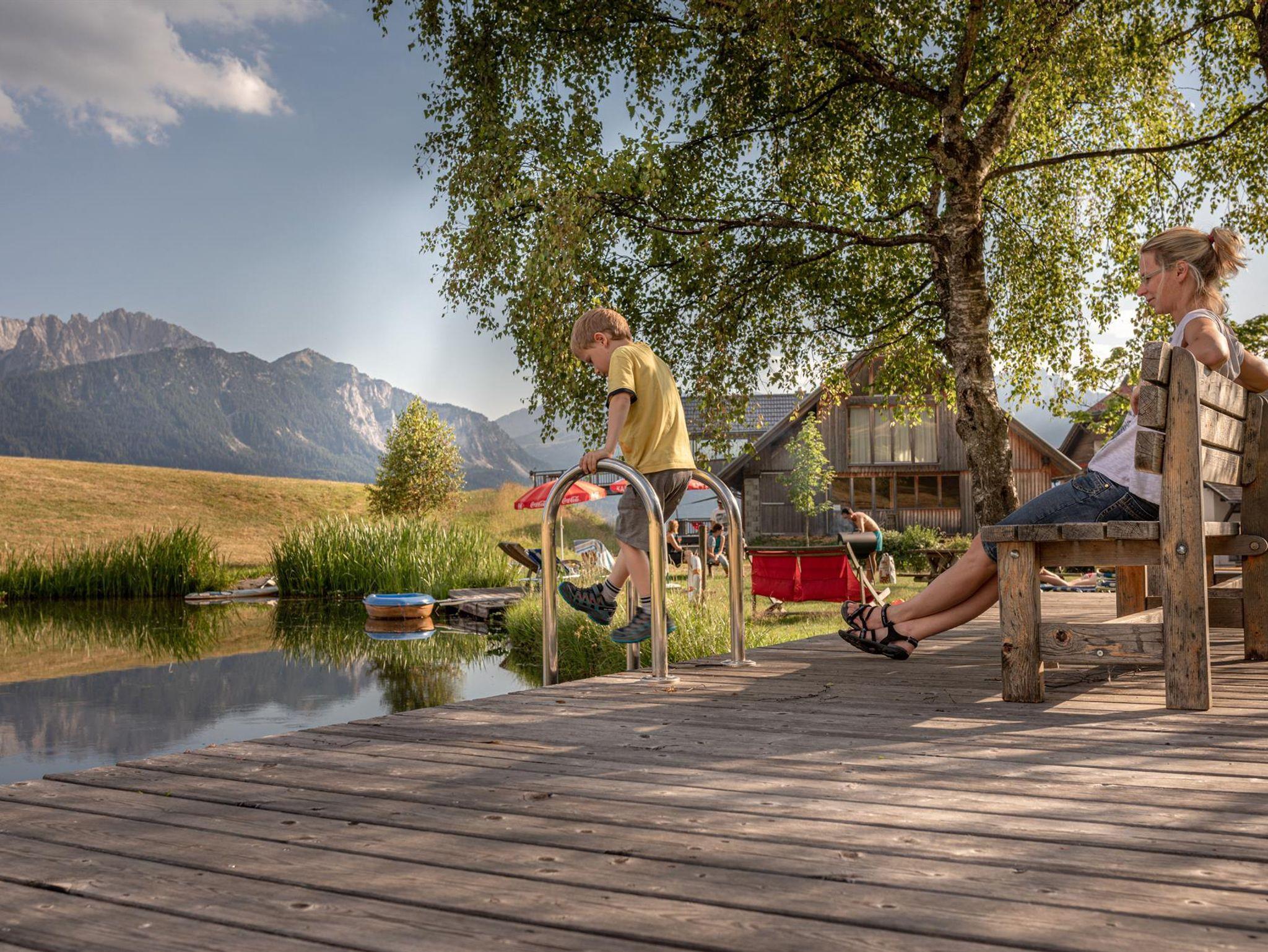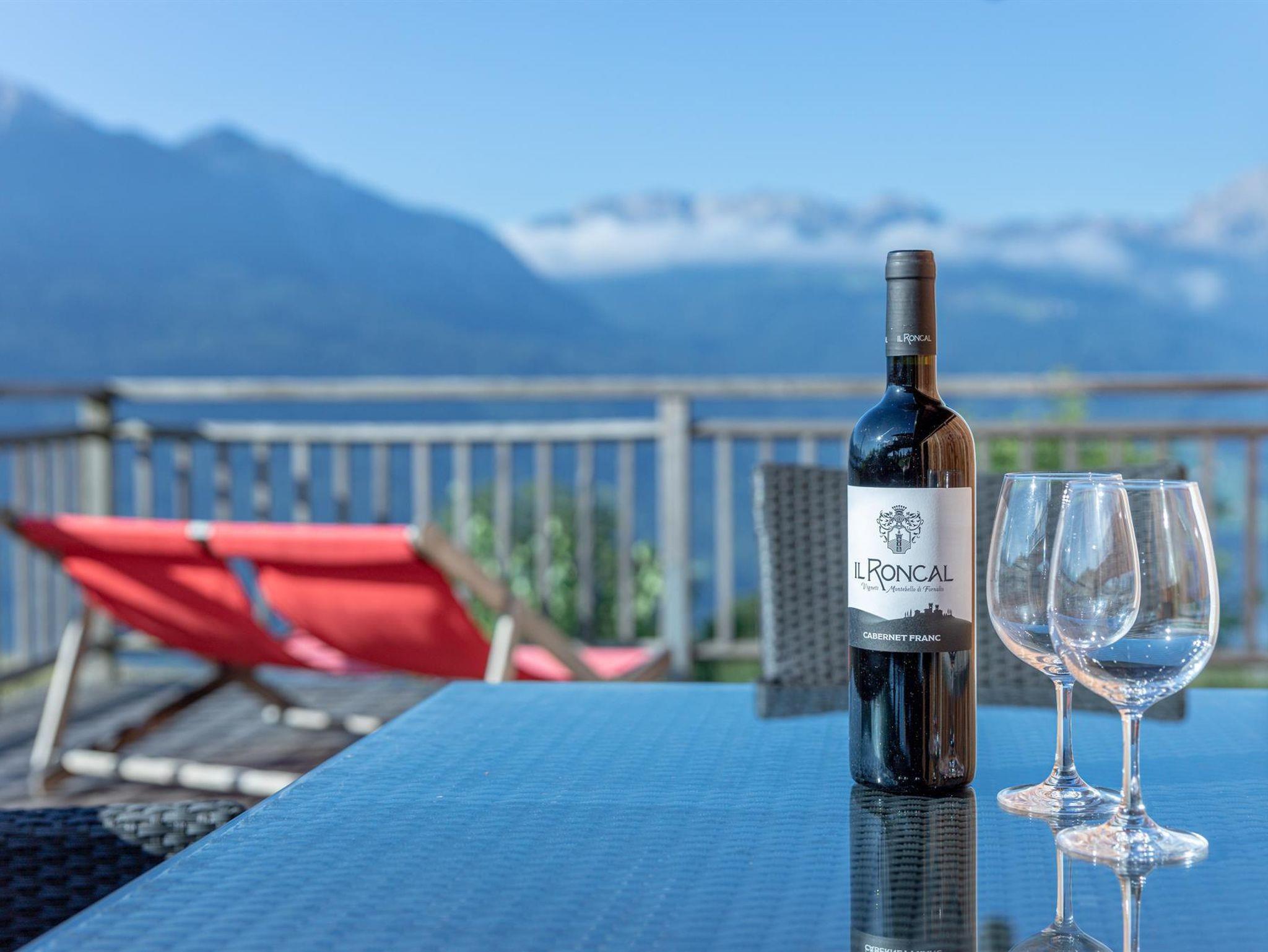 Die Terrasse – Ihr Lieblingsplatz: Stellen Sie sich vor. Sie sitzen gemütlich auf unserer Terrasse, der Blick schweift über die Berge, während Sie Ihren Morgenkaffee genießen. Entspannen Sie auf bequemen Komfortliegen. Für heiße Tage schützt das Sonnensegel. Wäscheständer zum Trockner der Badesachen vorhanden.