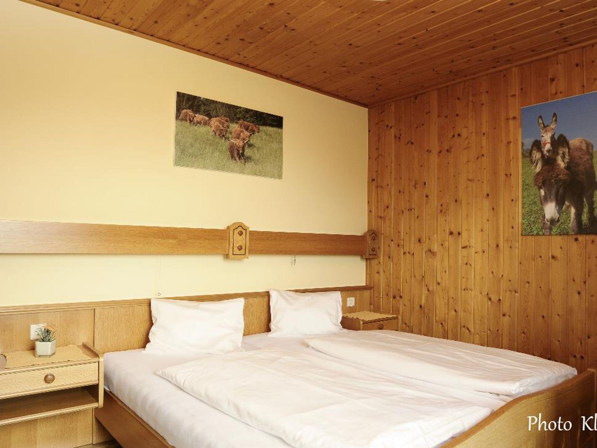 Unsere 5 Doppelzimmer sind mit WC-Dusche, Sat-TV und Balkon ausgestattet. Von allen Zimmern können Sie eine herrliche Aussicht auf die Umgebung genießen und sich bereits vor dem Frühstück an unserer besonderen Lage erfreuen. Das Abendessen kann gerne im hauseigenen Restaurant eingenommen werden. Hier werden unsere Gäste mit Produkten aus der eigenen Landwirtschaft verwöhnt.