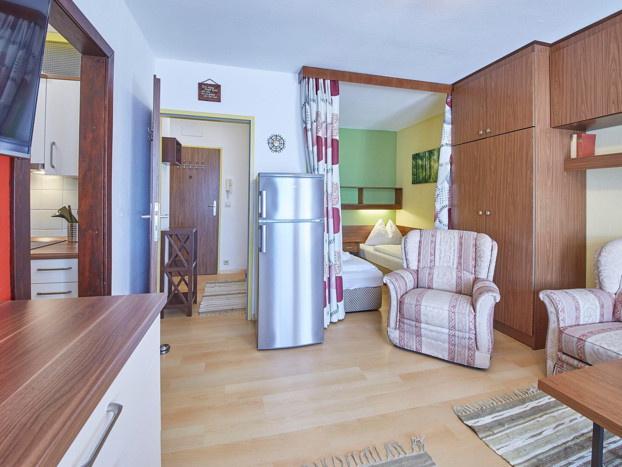 Unser Appartement Active bietet eine gemütliche Wohnung, buchbar für bis zu 4 Personen, in Spitzenlage fast direkt neben dem Zwölferkogellift. Die Wohnung offeriert ein Schlafzimmer mit Stockbett, einen Wohnbereich mit zwei Einzelbetten, eine geschlossene, vollausgestattete Küche, ein Badezimmer mit Badewanne sowie einen Balkon mit Ausblick auf die umliegenden Berge Saalbach-Hinterglemms. Ein Parkplatz direkt beim Gebäude sowie ein Skiraum runden Ihr Urlaubspaket optimal ab.
