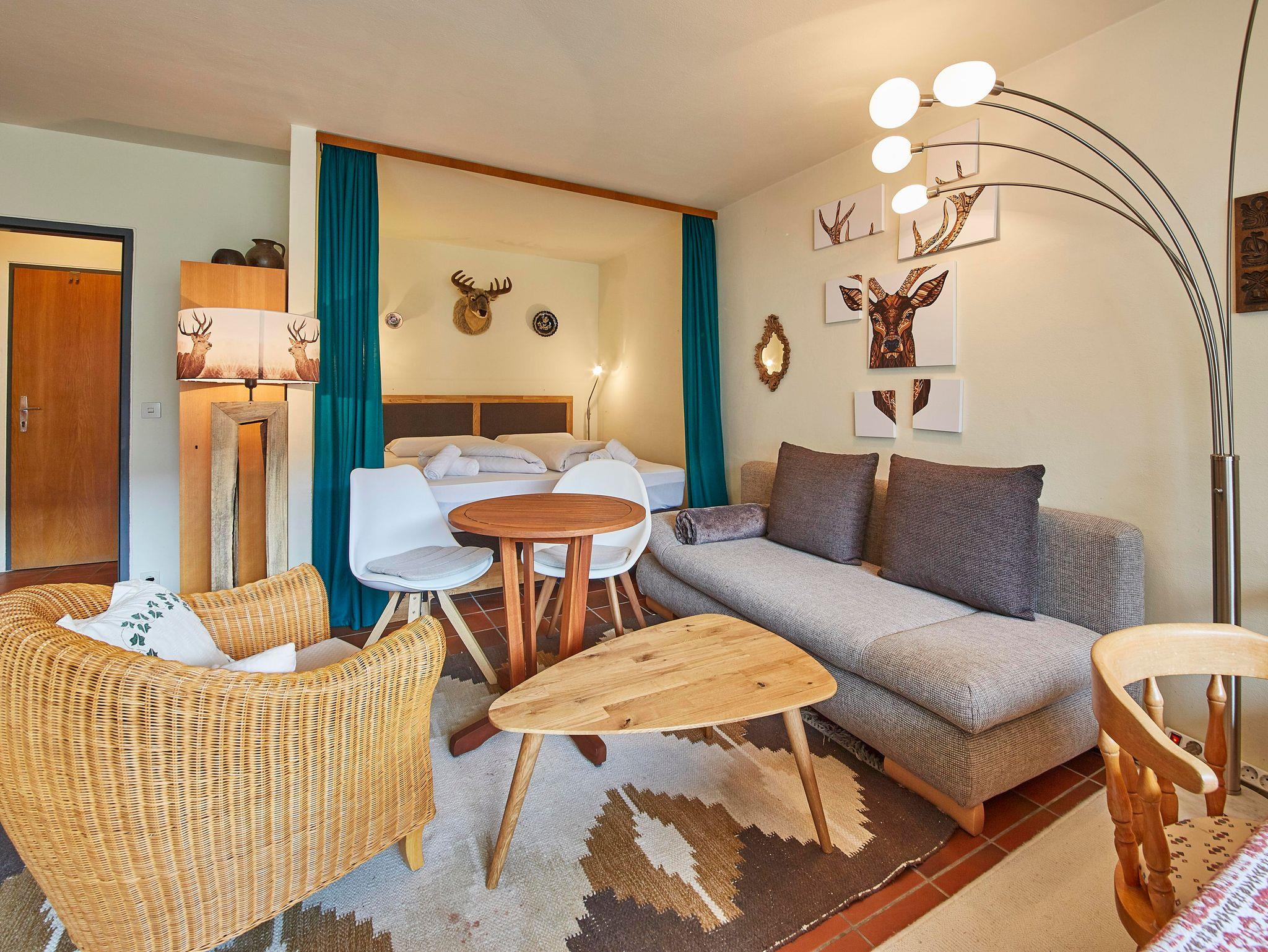 Gemütlichkeit pur in unserem 40 m² großen, komfortablen Appartement Homely für 6 Personen fast direkt neben der Skipiste der Zwölferkogelbahn in Hinterglemm. Die Ferienwohnung im alpinen Stil bietet einen Wohnbereich mit Doppelbett, Essbereich und Sofa, eine abgeschlossene Küche, ein Badezimmer mit Badewanne und Toilette, ein Schlafzimmer mit Etagenbetten sowie einen Balkon mit Ausblick auf die umliegende Berg- und Talllandschaft Hinterglemms. Des Weiteren kann ein Skiraum im Haus von sämtlichen Urlaubern genutzt werden.