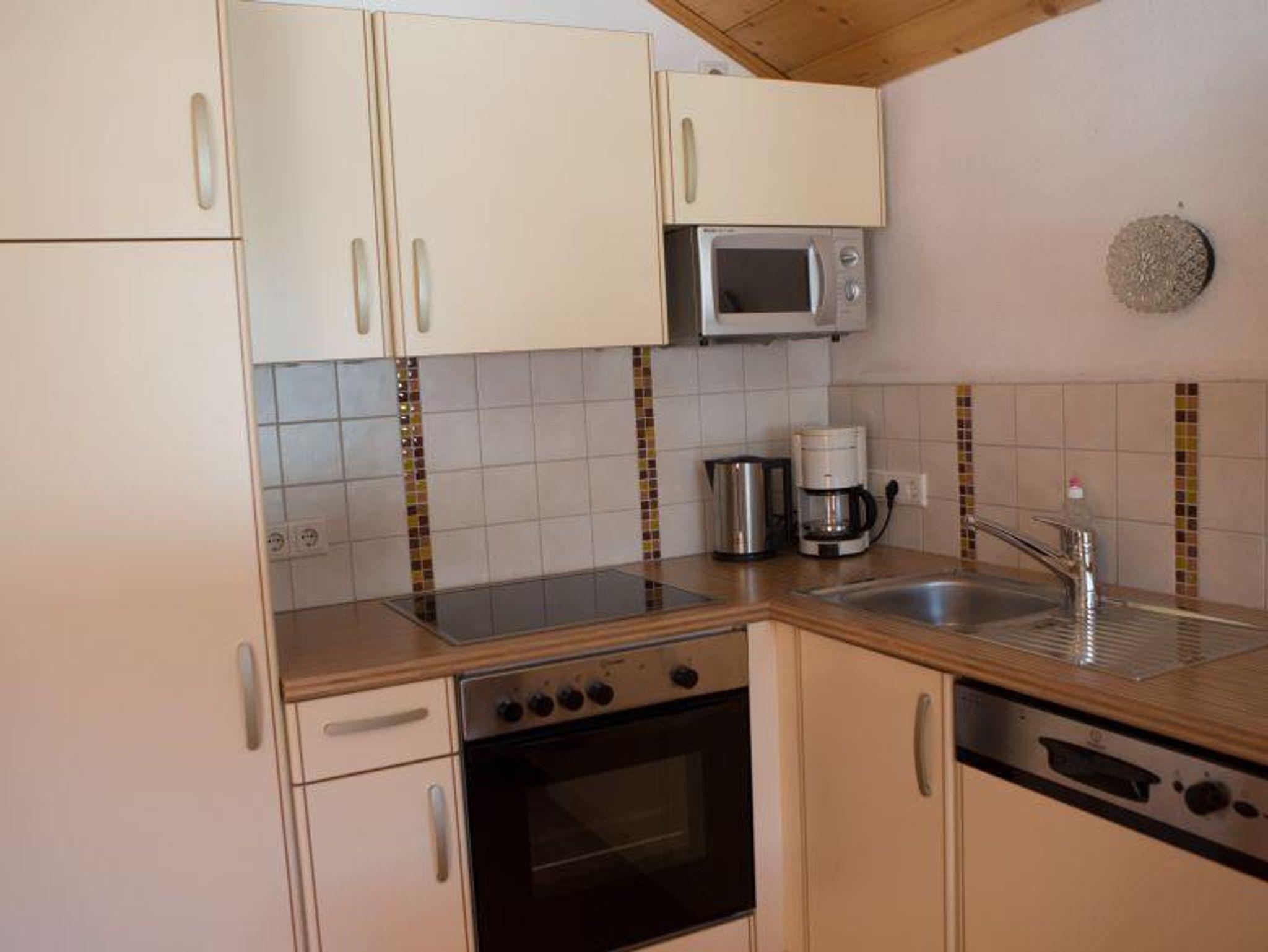Die Ferienwohnung ist im 1. Stock mit großer Terrasse und Balkon. Ein großes Bad mit Badewanne sowie seperates WC. Die Wohnküche ist mit einer Kaffeemaschine, Geschirrspüler, Wasserkocher, E-Herd mit Backrohr usw. bestens ausgestattet. In der Wohnung befinden sich 2 Schlafzimmer, jeweils mit Doppelbett. Eines der beiden Schlafzimmer mit zusätzlicher Schlafcouch und Einbaudusche. Selbstverständlich steht auch ein Fernseher zur Verfügung.