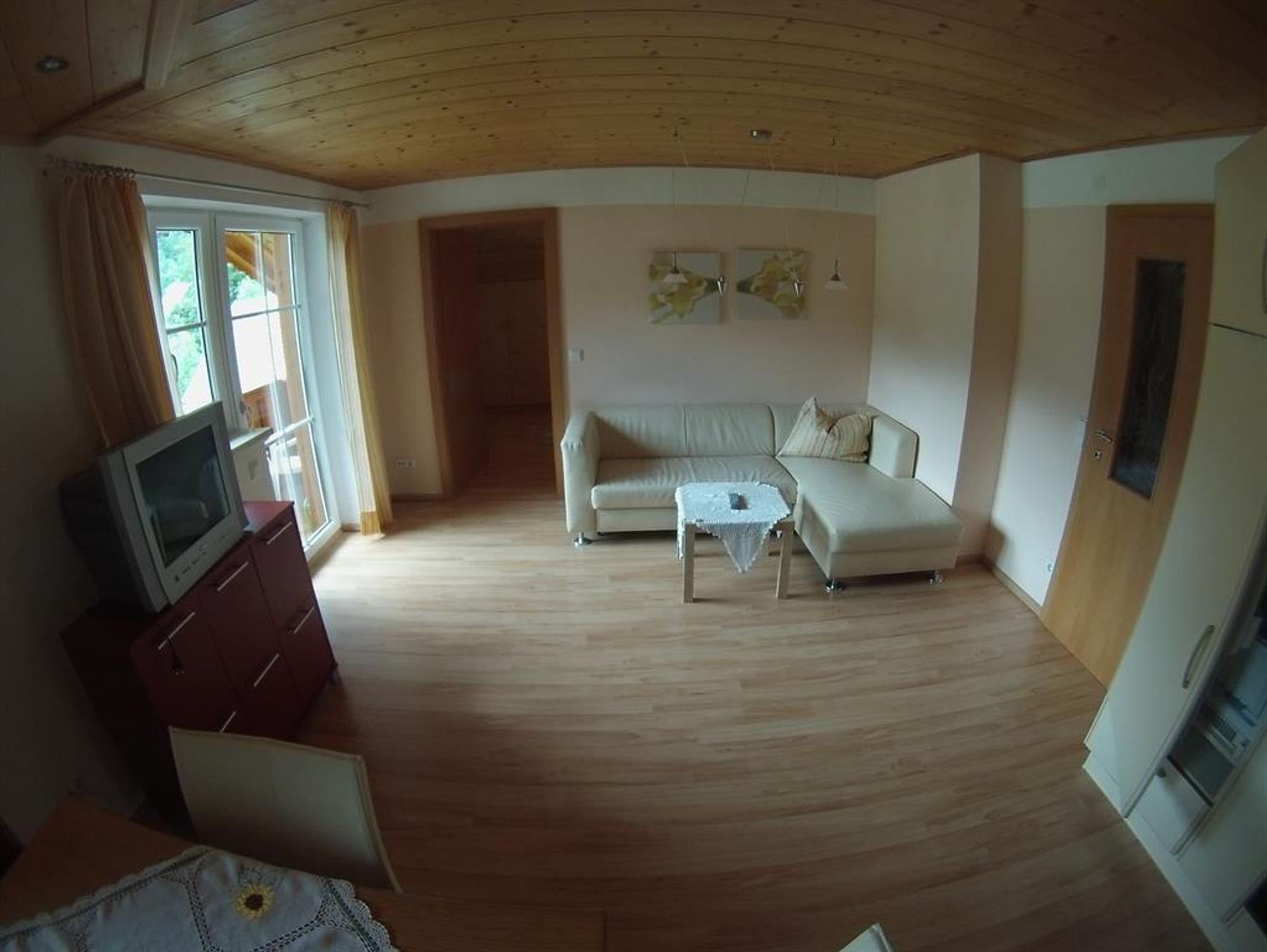 Unser Haus liegt direkt im Ort, neben dem Gasthof Hintersee. Obwohl es zentral ist, ist es sehr ruhig.