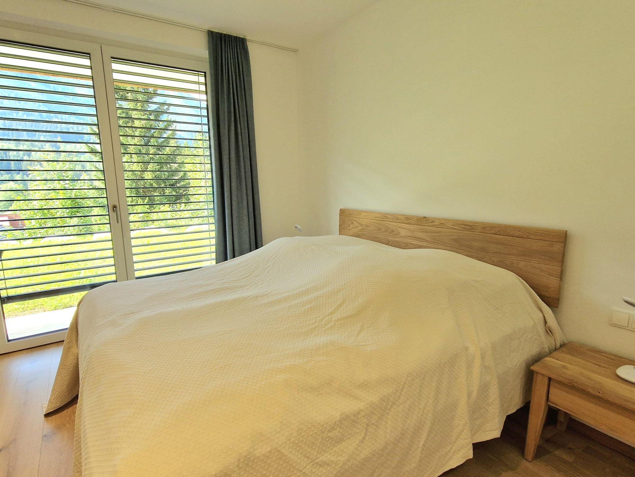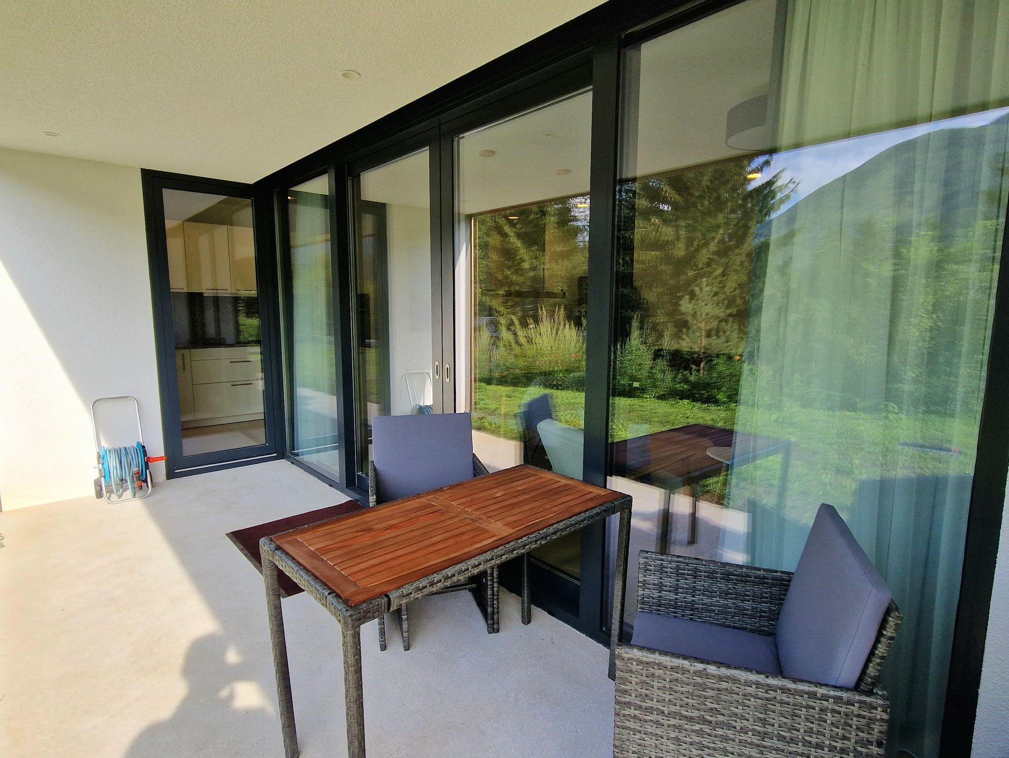 Ein TV Samsung The Frame steht zur Verfügung. Die Wohnung ist ausgestattet mit Fliesen, Parkett, Fussbodenheizung, separatem Abstellraum mit Waschmaschine und Trockner - auch zum Abstellen für Ski, Räder, Koffer, nutzbar. Eigener (überdachter) Abstellplatz für PKW