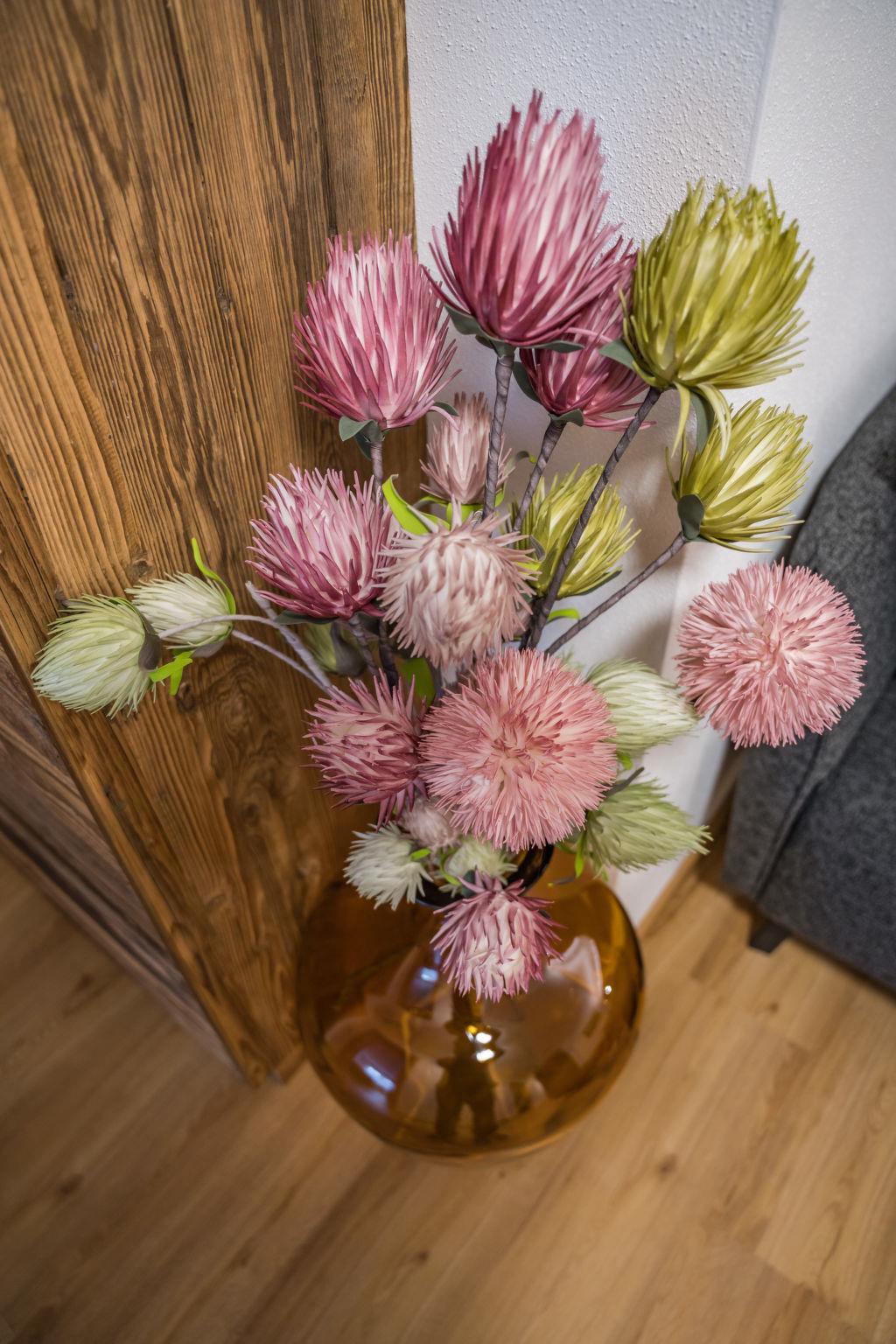 8-room apartment 200 m2 on 2 levels. Spacious, comfortable and modern furnishings: large living/sleeping room with 1 pull-out bed and satellite TV. 1 large double bedroom with 1 double bed and satellite TV. 1 large room with 1 bed, 1 double bed, shower/WC and satellite TV. Alcove with 1 pull-out bed (2 pers.). 1 large room with 1 bed, 1 double bed, shower/WC and satellite TV. 1 large room with 1 bed, 1 double bed and satellite TV. 1 large double bedroom with 1 double bed, shower/WC and satellite TV. Large kitchen-/living room (oven, 4 ceramic glass hob hotplates, toaster, kettle, freezer, electric coffee machine). 2 showers/WC. Heating. Large terrace 50 m2, large terrace 20 m2. Terrace furniture, barbecue. Very beautiful panoramic view. Facilities: Internet (WiFi). Parking (5 cars). E-charging station. Please note: suitable for families. Non-smokers only. Maximum 1 pet/ dog allowed. There are two comparable eat-in kitchens, each with a sofa bed. Instead of an enclosed bedroom, some sleeping areas are located in an open-plan area (gallery, alcove, etc.).