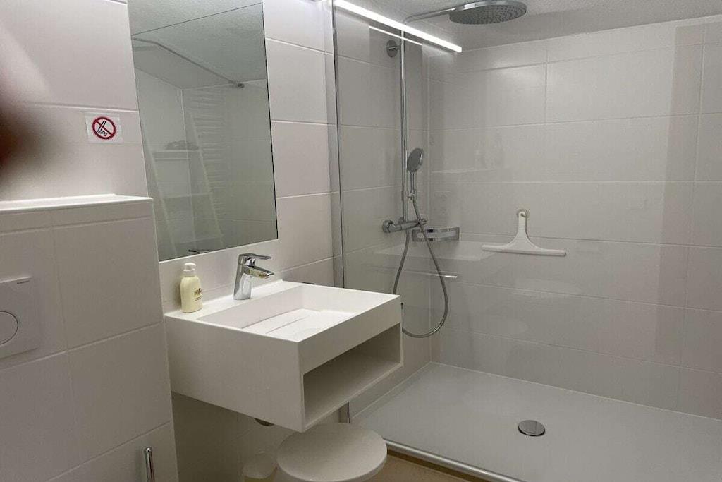 Feriehus = Gruppeindkvartering Komfortabelt feriehus, ideelt til 6-9 personer, I har hele etagen for jer selv Faciliteter: 4-værelses lejlighed med et dobbelt- og et trepersonersværelse og lige ved siden af, en 2-værelses lejlighed til op til 4 personer Alle kan sidde og spise sammen ved det store bord i 4-værelses lejligheden. Om nødvendigt kan I også trække jer tilbage til private aktiviteter.
