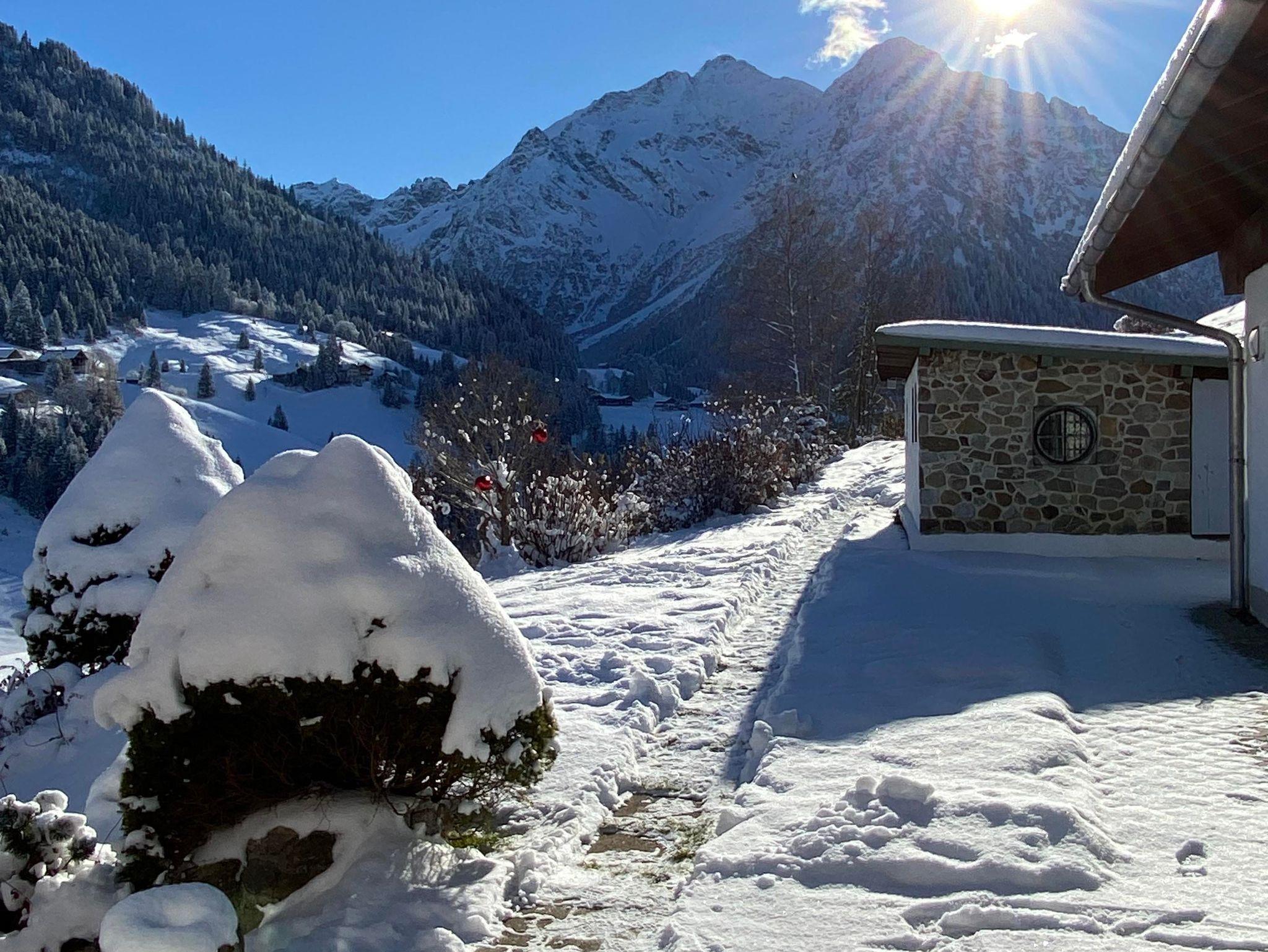 Schöne Aussichtslage auf Anhöhe in der Talmitte mit ca. 10 Gehminuten zur Bushaltestelle (kostenloser Walserbus). Walserhaus und Skilift Heuberg ca. 12 Gehminuten (bei Verfügbarkeit auch Depot für gesamte Skiausrüstung am Lift mietbar). Kostenloser PKW-Stellplatz am Haus. Abstellraum mit Fahrradständer (Steckdose für E-Bike) und für Skiausrüstung. Optional Garage mit Wallbox für Elektroauto buchbar. Im Winter können ggf. Schneeketten für die Zufahrt erforderlich sein. Haus in 2022 renoviert.