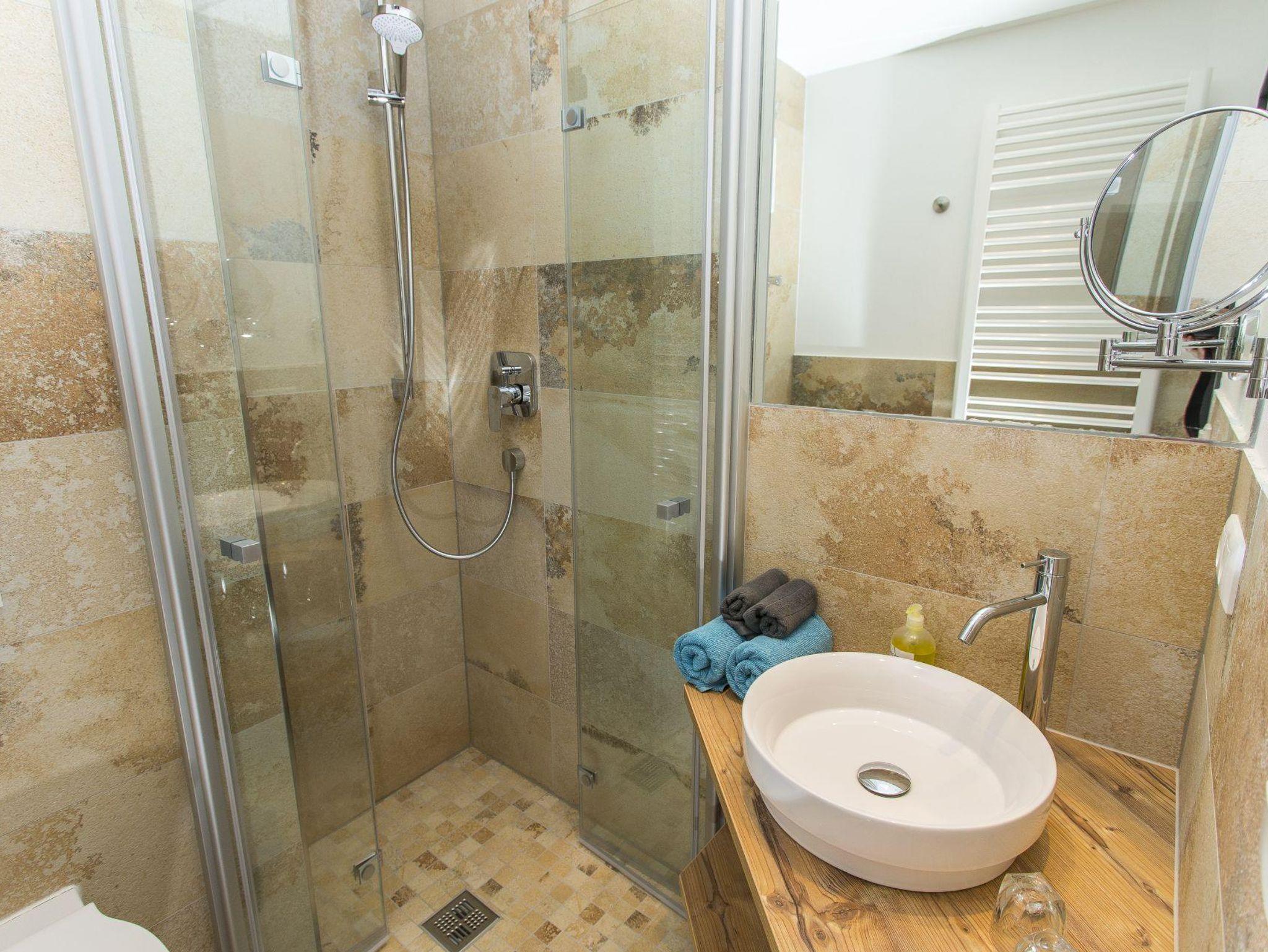 • Duschbad mit Fön, Kosmetikspiegel und WC