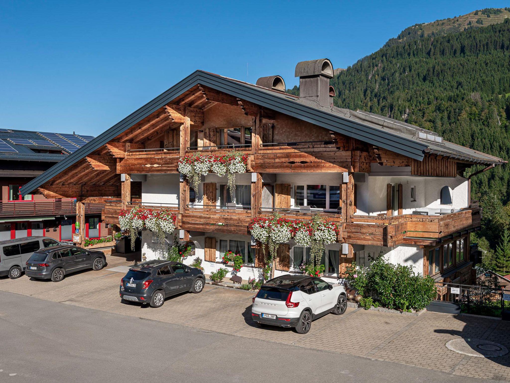 Erleben Sie Ferien im Herzen von Hirschegg. In unmittelbarer Nähe ist das Walserhaus, Bäckerei, Restaurants, Bushaltestelle und Bergbahn.