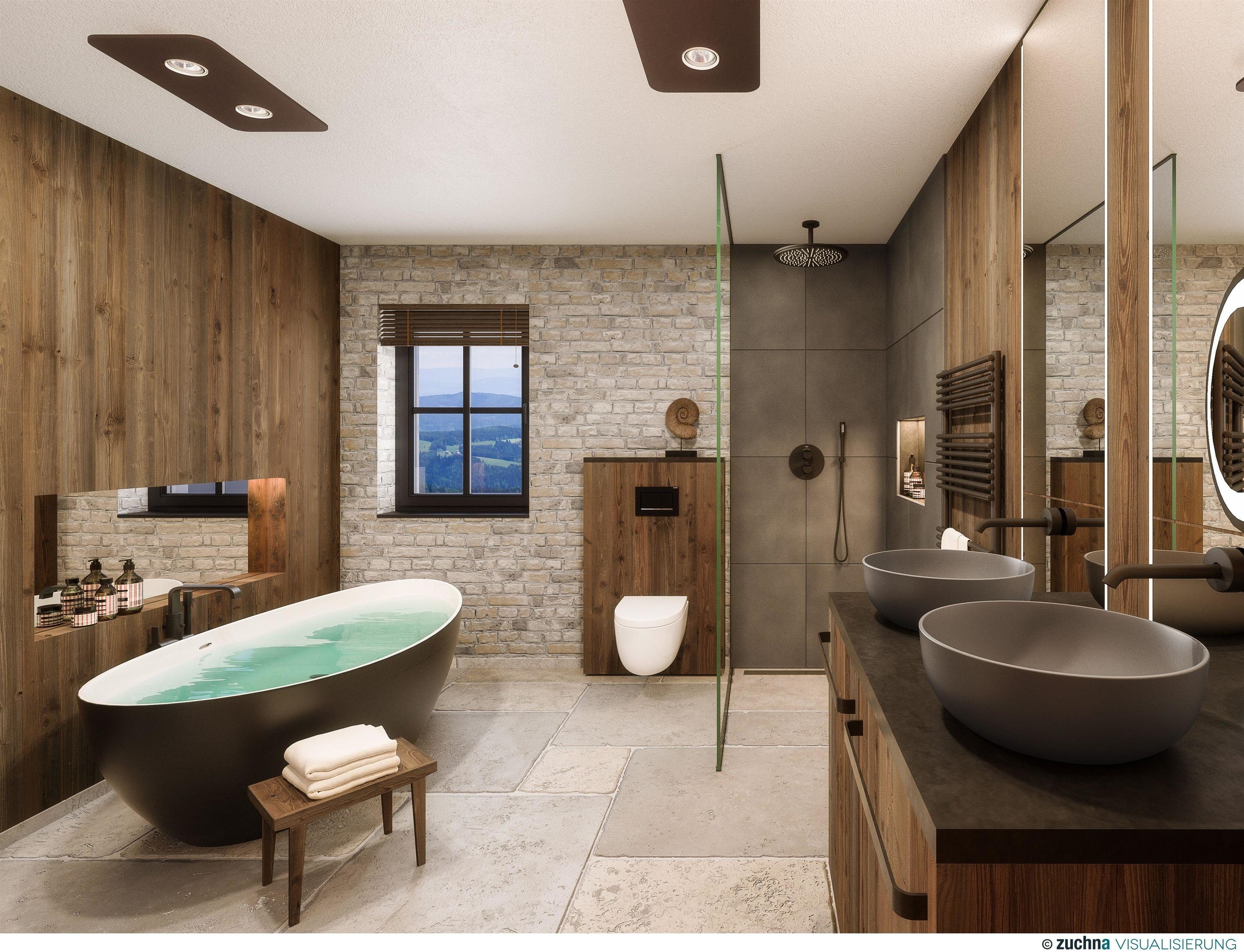Jedes einzelne Bergchalet ist mit viel Liebe zum Detail eingerichtet und mit hochwertigsten Materialien ausgestattet. So verfügt jedes unserer Bergchalets über eine vollausgestattete Designer-Küche, einem exklusiven und modernen Wohn-Essbereich mit offenem Kamin, Balkon, zwei geräumige Schlafzimmer mit Terrasse sowie ein luxuriöses Bad mit freistehender Badewanne, ebenerdiger Regendusche sowie einer eigenen finnischen Sauna. Außerdem zwei WC´s sowie einen Hauswirtschaftsraum mit Waschmaschine und Wäschetrockner. Alle Räume in den Bergchalets haben eine Fußbodenheizung.