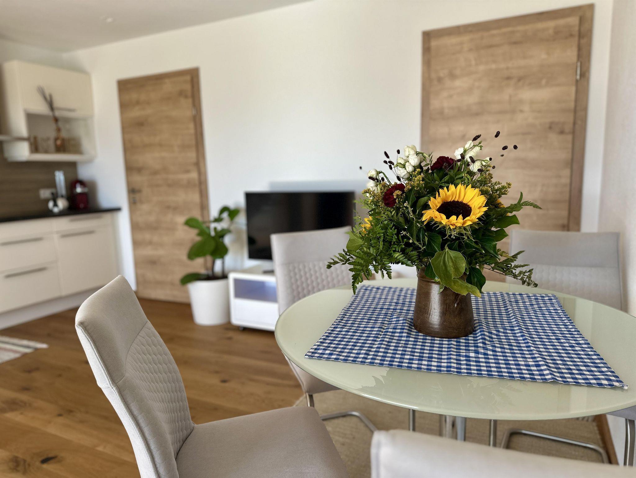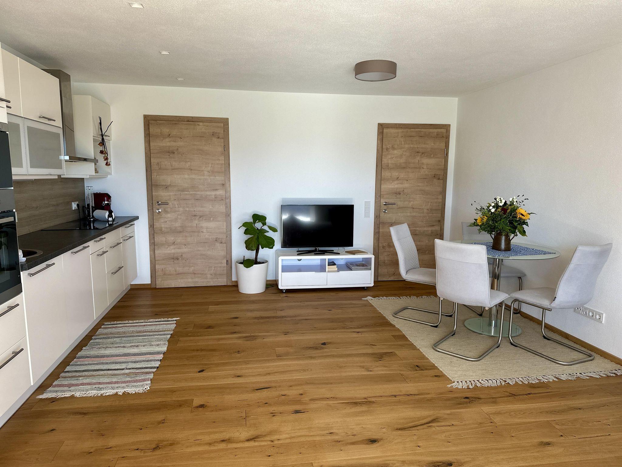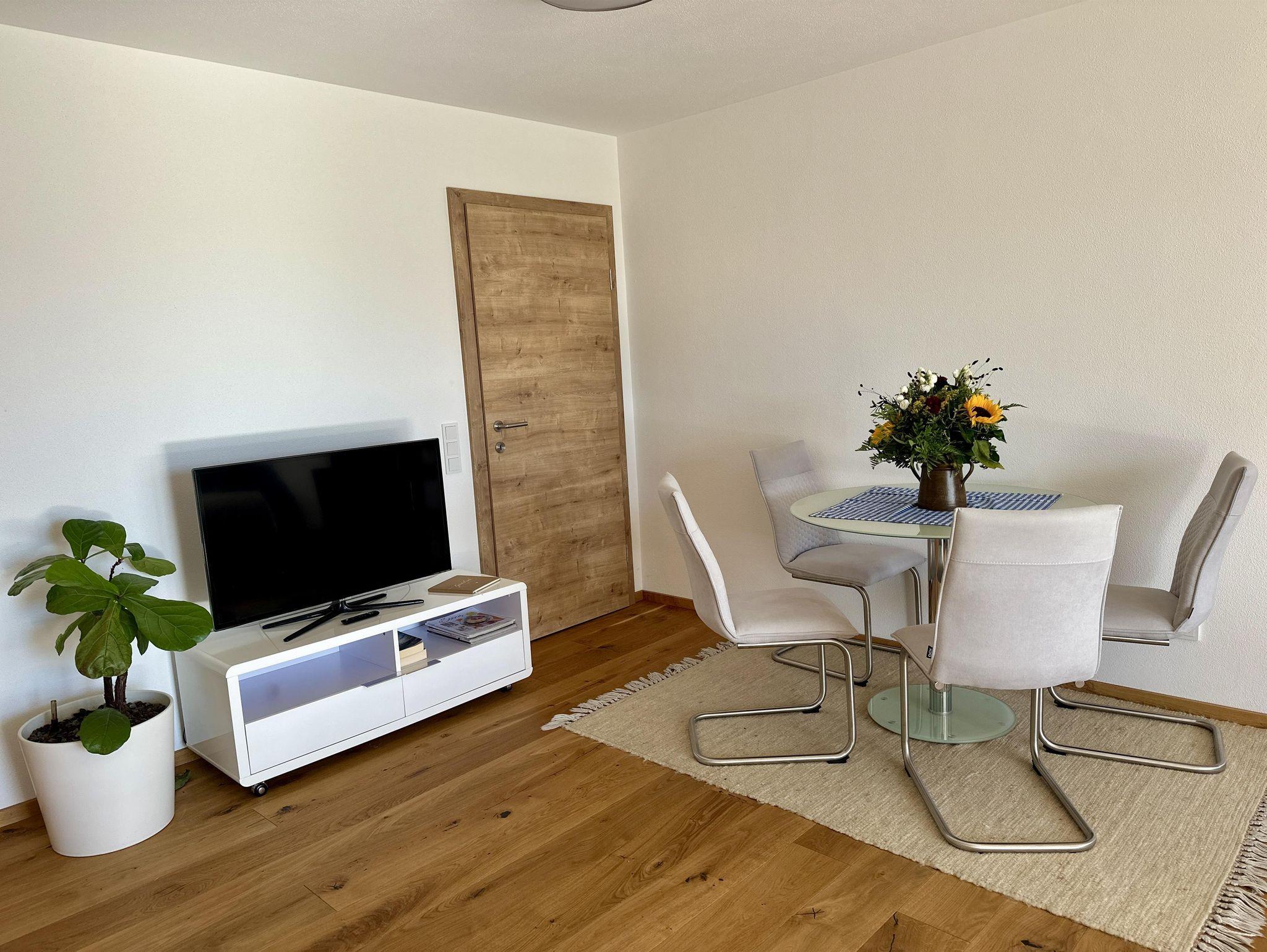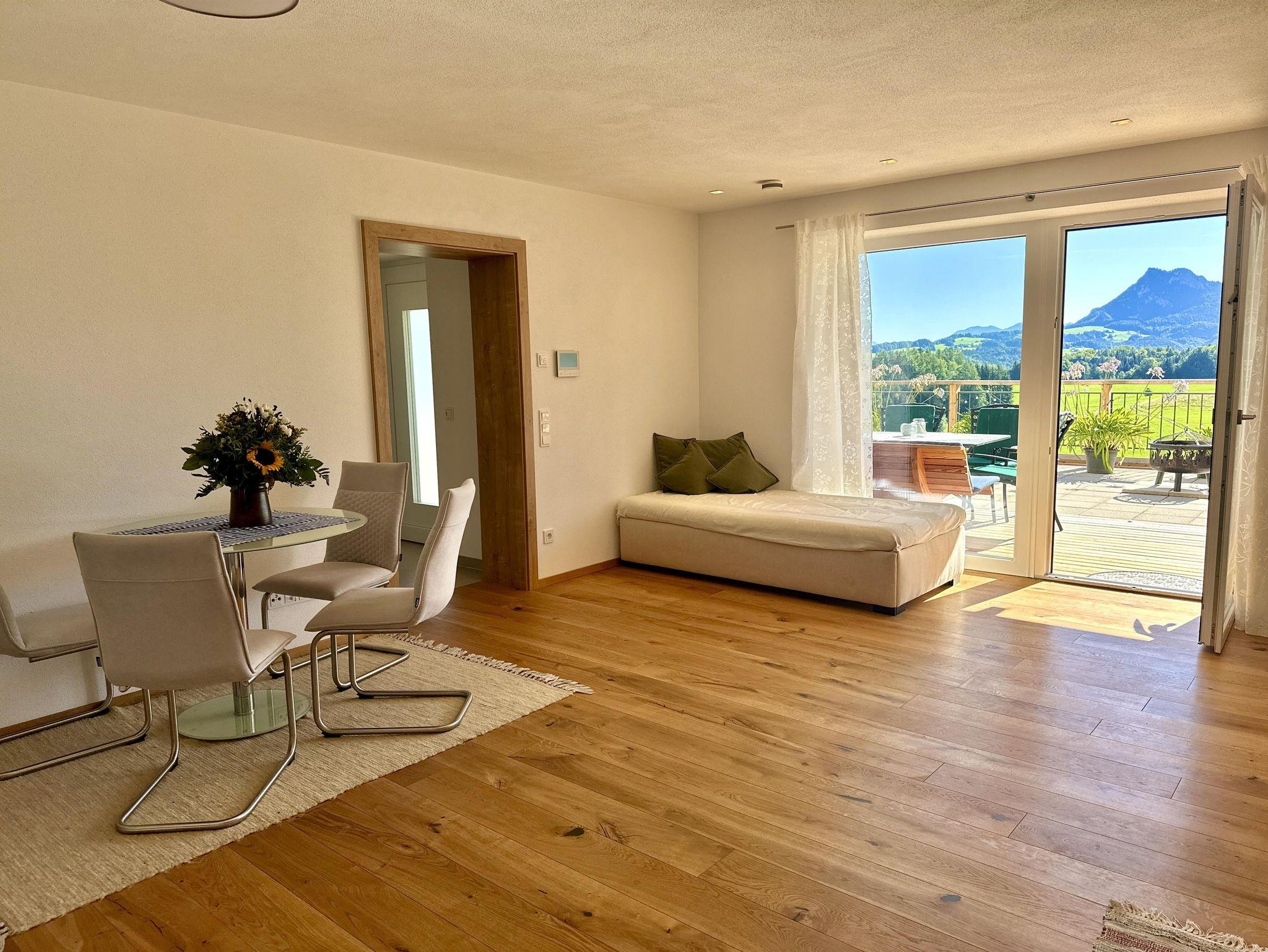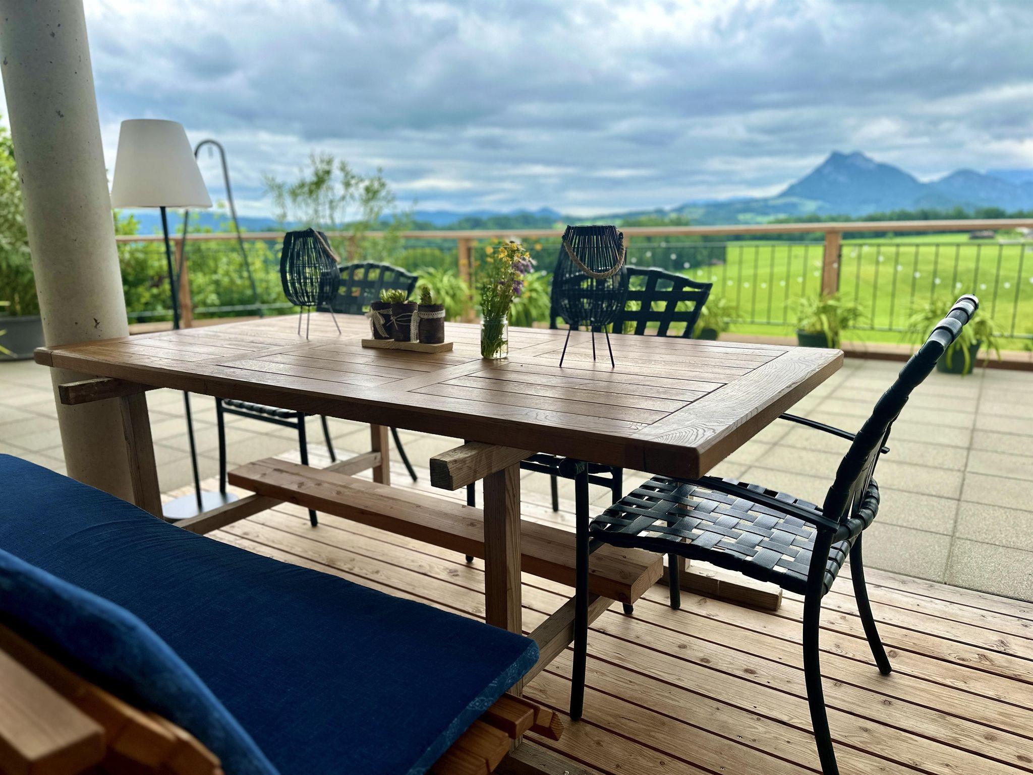 Entdecken Sie unser charmantes Ferienapartment, das mit seiner großen Terrasse ideal für morgendliche Frühstücke unter den ersten Sonnenstrahlen ist. Später können Sie auf den gemütlichen Sonnenliegen entspannen und die Seele baumeln lassen. Die Wohnung bietet eine voll ausgestattete Küche mit Backofen, Kühlschrank, großem Gefrierfach, Kaffeemaschine, Wasserkocher und Kochgeschirr, die keine Wünsche offen lässt. Kostenloses WLAN steht Ihnen während Ihres Aufenthaltes zur Verfügung. Das gemütliche Zimmer mit Boxspringbett und Blick auf die atemberaubende Bergwelt lädt zum Verweilen und Genießen ein. Perfekt für alle, die Komfort lieben und die Natur direkt vor der Haustür schätzen.