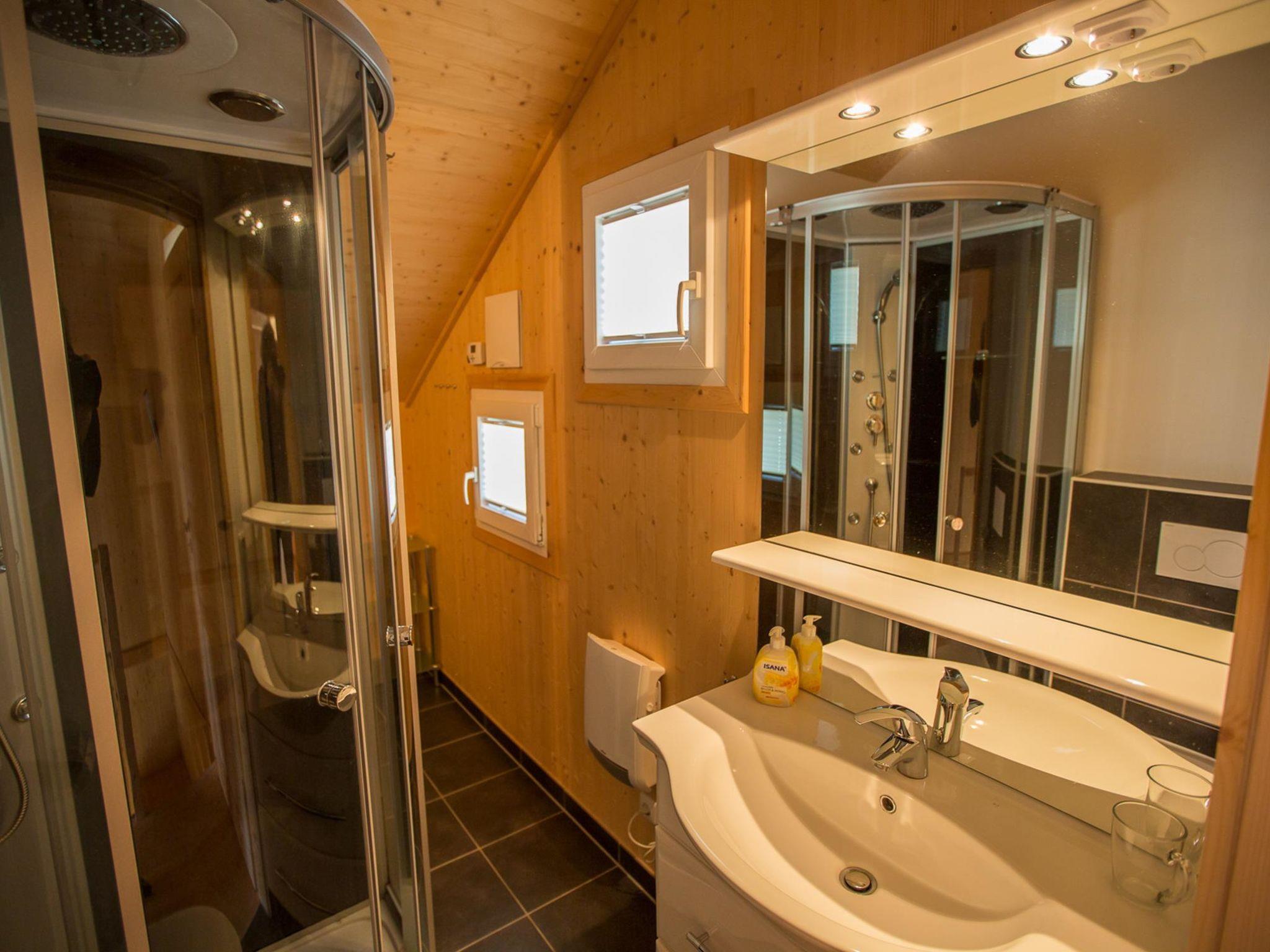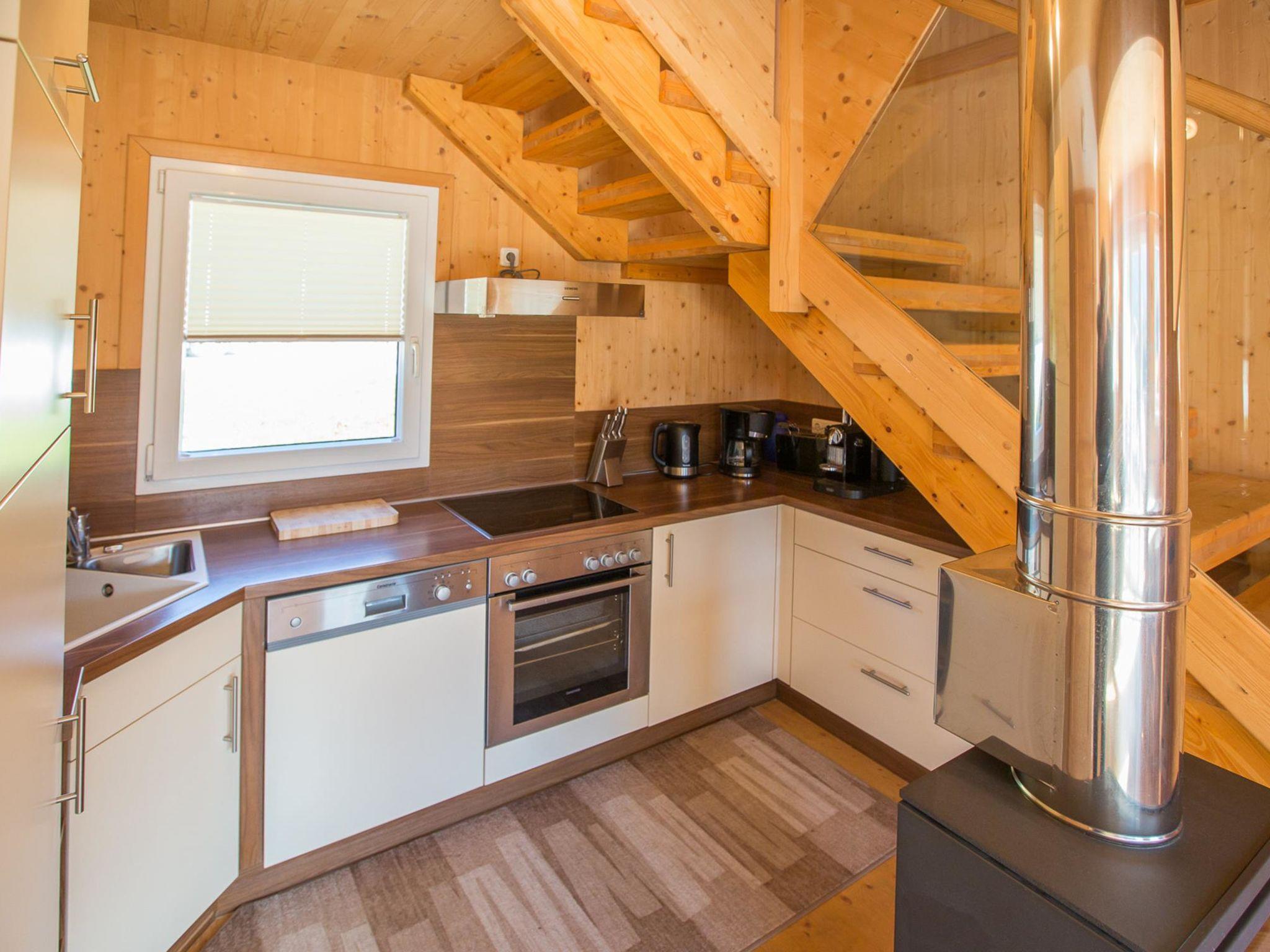 "Superior 63 mit IR-Sauna&Sprudelwanne", 4-room chalet 83 m2. Spacious, comfortable and tasteful furnishings: living/dining room with dining table and satellite TV (flat screen). 2 double bedrooms. 1 room with 1 x 2 bunk beds. Open kitchen (oven, dishwasher, 4 ceramic glass hob hotplates, toaster, kettle, microwave, electric coffee machine). Bath/WC, hydro massage bath, Sauna. Terrace. Terrace furniture. Very beautiful view of the mountains and the countryside. Facilities: Internet (WiFi, free). Please note: non-smokers only.