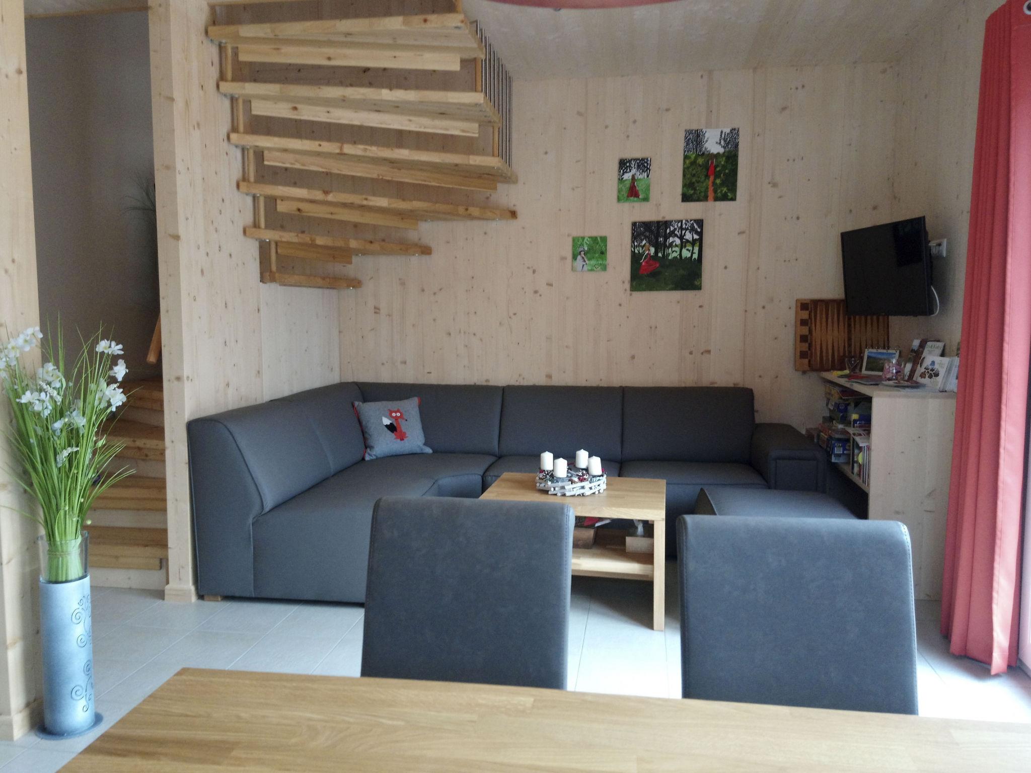 "Superior 48 mit IR Sauna", 4-room house 70 m2 on 2 levels. Bright, comfortable and tasteful furnishings: living/dining room with dining table, satellite TV, flat screen and gas heater. 2 double bedrooms. Open kitchen (oven, dishwasher, 4 ceramic glass hob hotplates, microwave, electric coffee machine). Bath/WC. Wooden floors. Balcony or small terrace. Terrace furniture. Very beautiful view of the mountains and the countryside. Facilities: sauna. Internet (WiFi, free). Parking at the house. Please note: non-smoking house.