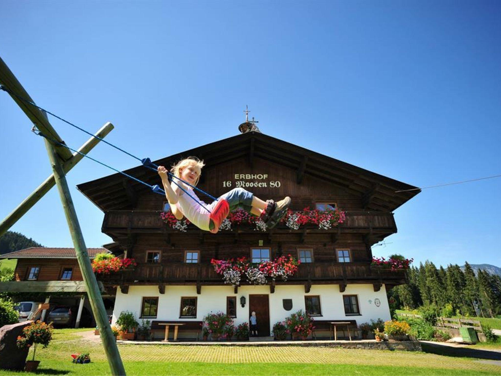 Ruhige, verkehrsarme Lage - Sonnenplateau mit herrlicher Aussicht ins Brixental. Holzmöbel im ländlichen Stil, großer Balkon. Komfortabel eingerichtete Appartements für einen Urlaub zum Wohlfühlen. Im Sommer Ausflüge auf die Alm mit Käseerzeugung. Hofeigene Bio-Produkte. Miterleben des bäuerlichen, familiären Lebens. Erbhof seit über 400 Jahren. Großer Spielplatz mit Liegewiese - einfach Ruhen und die Seele baumeln lassen - Urlauben und Erhohlen