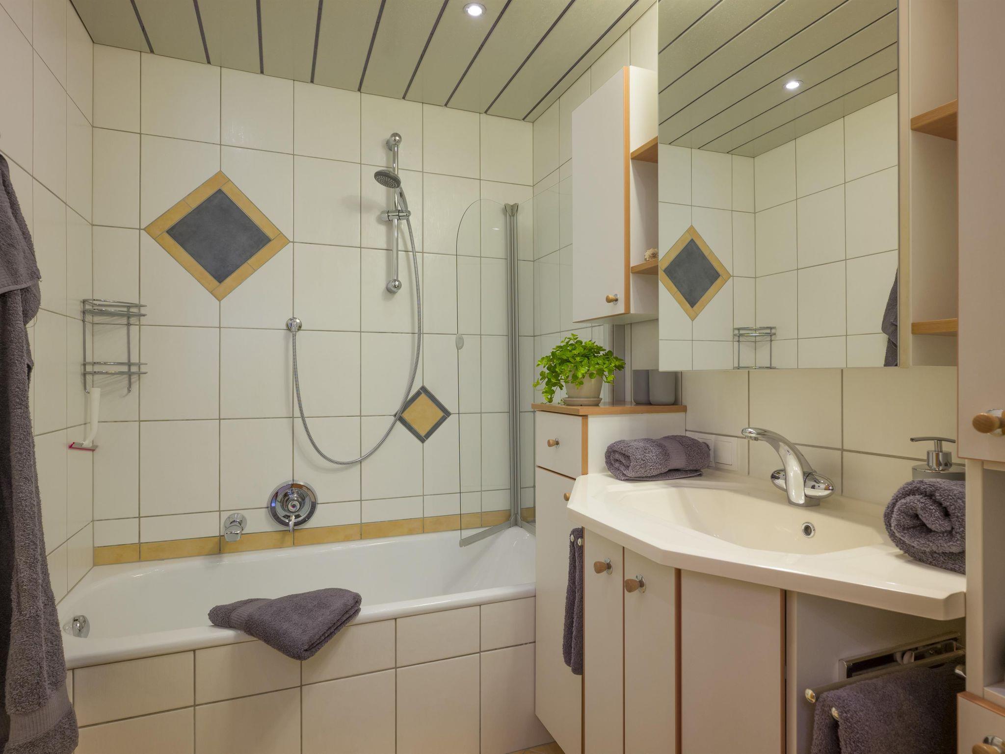 Die großzügige, helle Wohnung mit Balkon befindet sich im 2. Stock unseres Bauernhauses. Sie verfügt über 2 Schlafzimmer und einer großen Küche mit offenem Durchgang zum Wohnzimmer (und einer ausziehbaren Couch). Bad und WC sind getrennt. Das Wohnzimmer lädt mit einer großen Wohnlandschaft zum Ausspannen ein. SAT-TV und WLan sind inklusive.