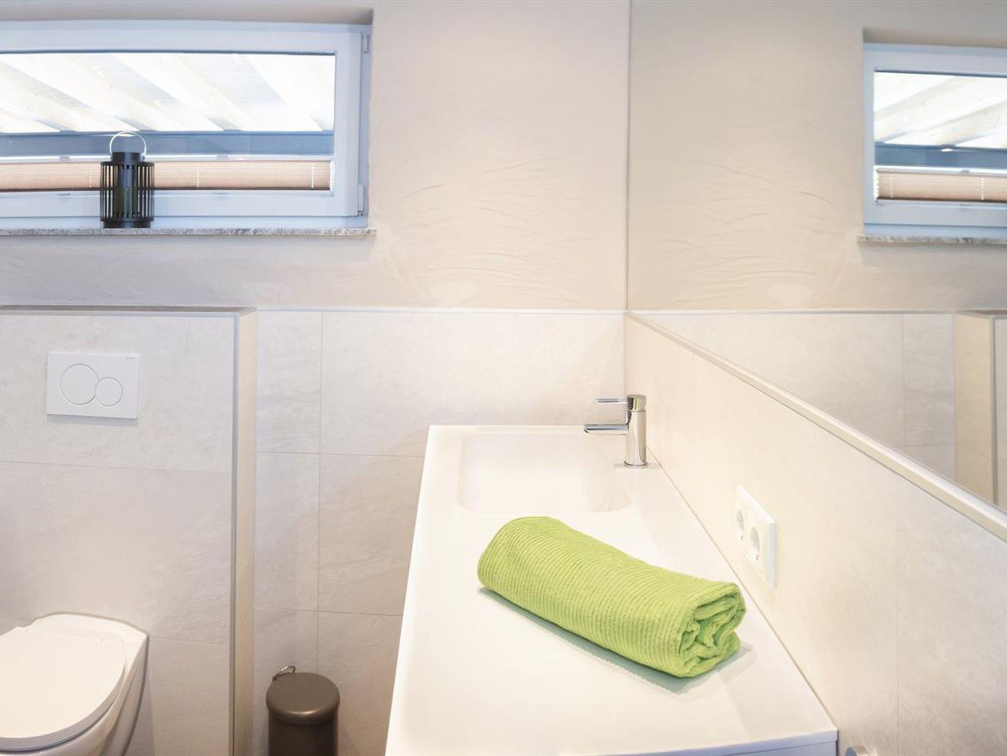 Das Ferienhaus besteht aus zwei Etagen. In der oberen Etage befindet sich ein großes Wohnzimmer, ein gemütliches Esszimmer mit Verbindung zur Terrasse und zum Garten, eine Küche mit Spülmaschine, Cerankochfeld, Kühlschrank, Kaffeemaschine, Toaster und Mikrowelle. Des weiteren Bad, Toilette und 2 Schlafzimmer mit Doppelbett. 1 Schlafzimmer mit Zugang zum Balkon/Terrasse.