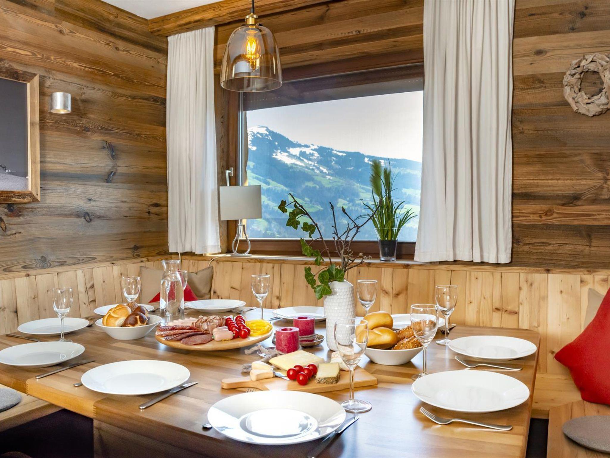 Genießen Sie Ihre Auszeit in unserer Panorama-Zirben Sauna mit Ausblick auf die Kitzbühler Alpen und gemütlichem Ruheraum der keine Wünsche offen lässt.
